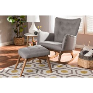 Wholesale Interiors Baxton Studio Waldmann Mid-Century Modern Grey Fabric Upholstered Rocking Chair and Ottoman Set