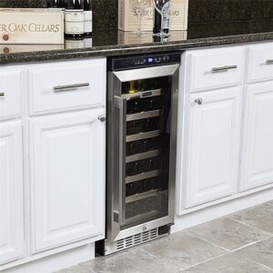 – Tempered double pane gray-smoked glass on this wine bottle refrigerator is for enhanced UV protection