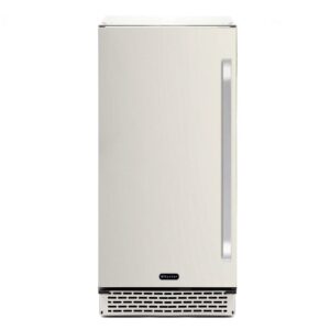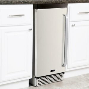 - Stainless steel trimmed glass door with sleek white cabinet