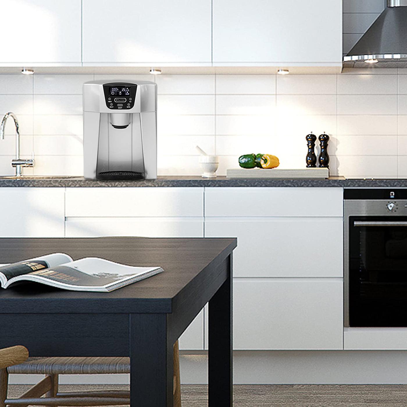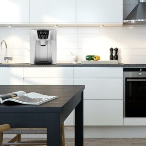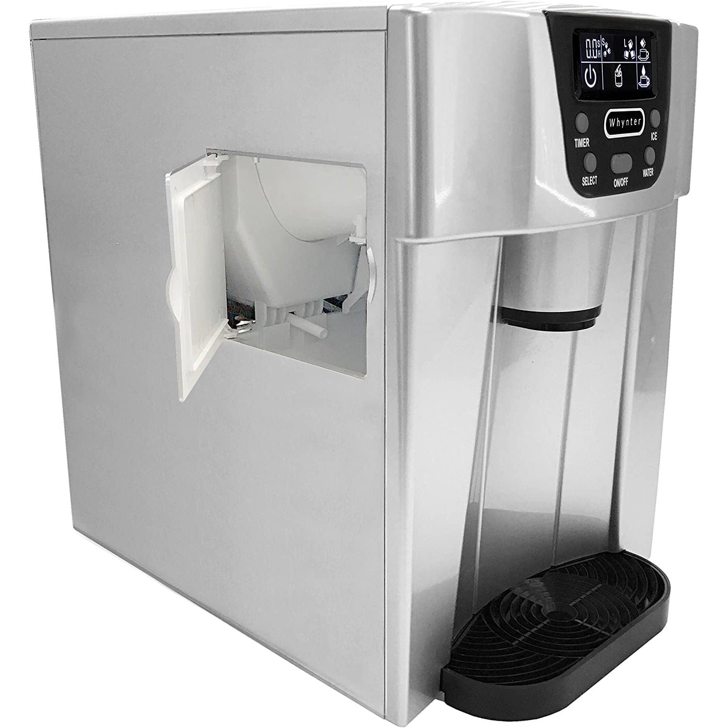 The compact self-contained design of the Whynter IDC-221SC ice maker and water dispenser. This silver ice maker gives any kitchen or workplace the convenience of dispensing ice and water from one system. In addition to efficiently making perfectly bullet-shaped ice cubes, this convenient 2-in-1 unit is able to make up to 22 lbs. of ice per day. This countertop ice maker can hold up to 2 liters of water with a built-in line to make filling easy. The water can then be dispensed cold (melted ice) or even at room temperature with a simple push of a button. Always looking to make our appliances just a little better, we have designed an optional direct water connection function for this dispenser. The direct connection allows you the convenience of having a continuous supply of ice and water without having to refill the water reservoir!