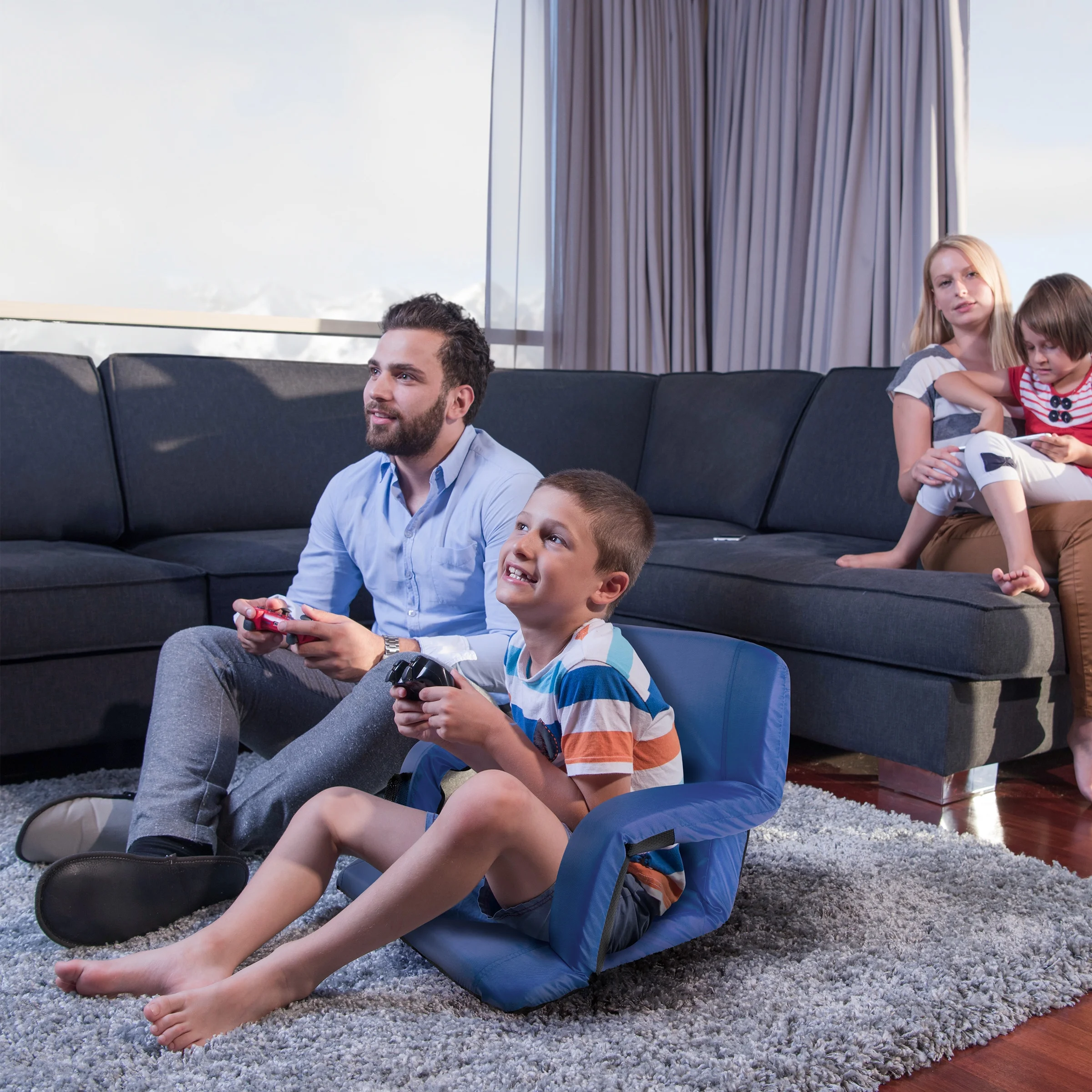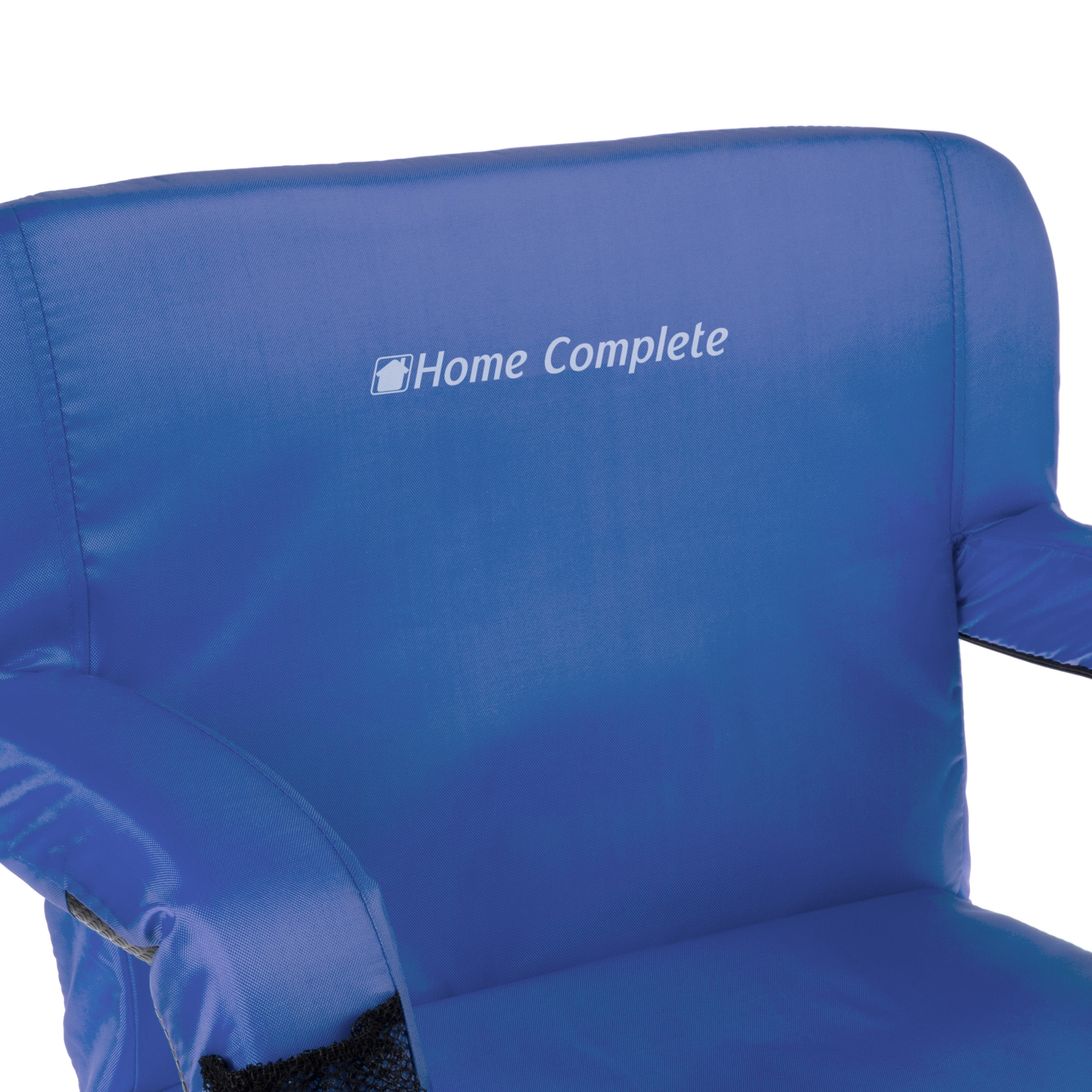 Enjoy any game or event in comfortable style with the Home-Complete Cushioned Wide Stadium Seat Chair. The portable chair is water-resistant and has an antiskid bottom for a sturdy fit on any bleacher, bench, or floor surface. Designed with a wide seat, padded cushioning, back support, and arm rests, this chair provides ultimate comfort for sporting events, camping, boating, concerts, days at the beach, picnicking, extra seating at home and more! It also even reclines to 6 different positions, so you can find an angle that is just right for you. For on-the-go seating, this chair folds flat and features two backpack-style straps so you can carry it anywhere.