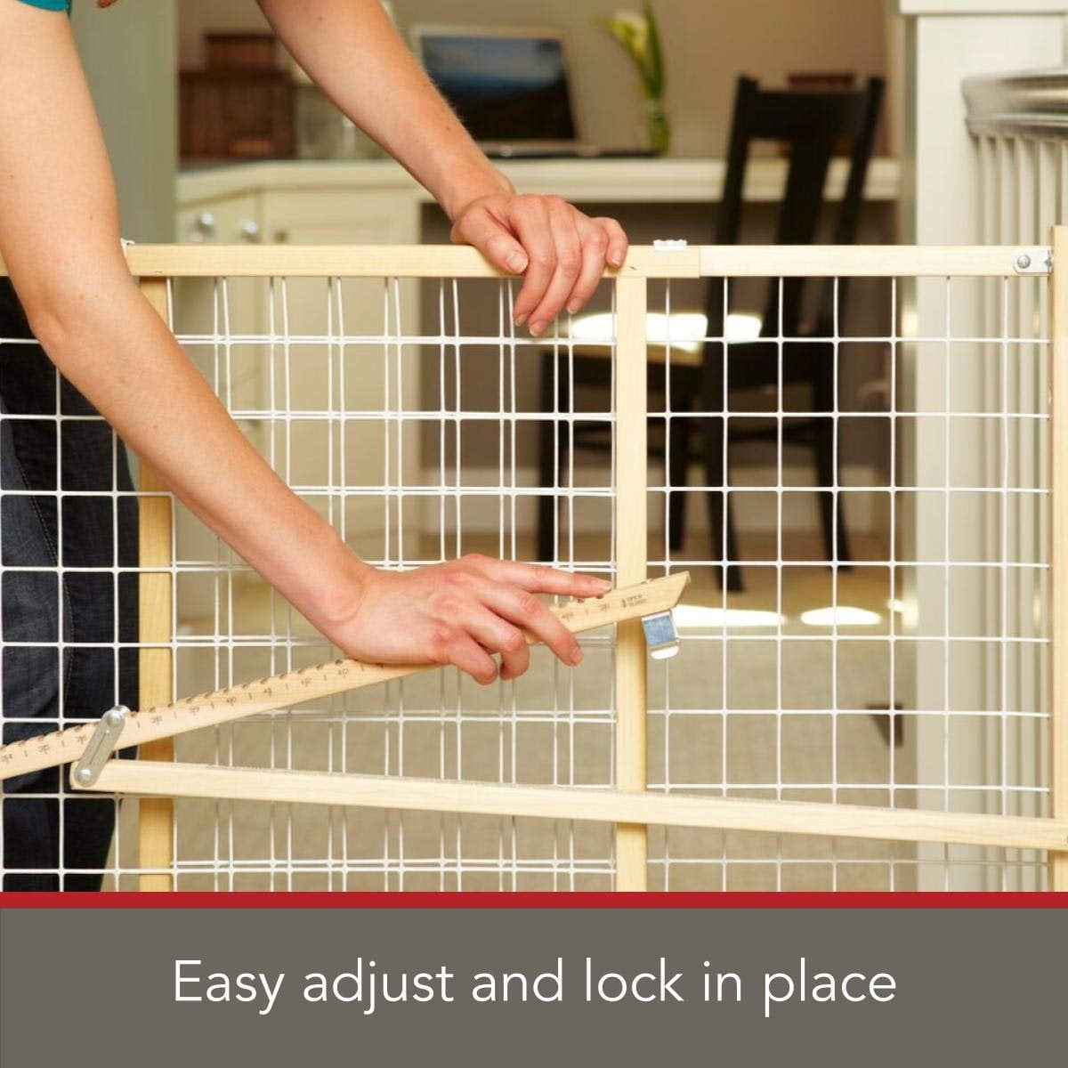 It’s three cheers for playful days with the Toddleroo by North States® Extra-Wide Wire Mesh Wood Gate, specially designed for wide openings. With quick set up, the gate pressure mounts easily and securely without the use of hardware. Simply position and lock in place. The sturdy wood frame of this gate is made from American sustainable hardwood making it extremely durable. This wood comes from USA sustainable forests which are carefully managed so that trees are replaced with seedlings as they mature and fall. These efforts help to preserve the natural environment in which we live.