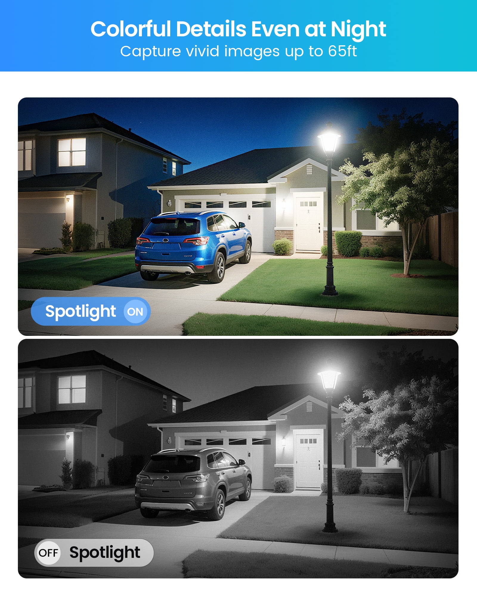 Wide Monitoring Range You can adjust the camera view on your smartphone, 355° pan and 140° tilt to see different angles around the house to ensure safety. Immediate Threat Alerts You will receive timely and precise alerts in real-time when the camera detects any suspicious activity. IP66 Weatherproof IP66 weatherproof casing makes it tough enough to withstand harsh weather conditions. Compact NVR Design Slim and sleek all-in-one NVR offers maximal flexibility in placement. Mount it to the wall or put it on any flat surface like a table or shelf.