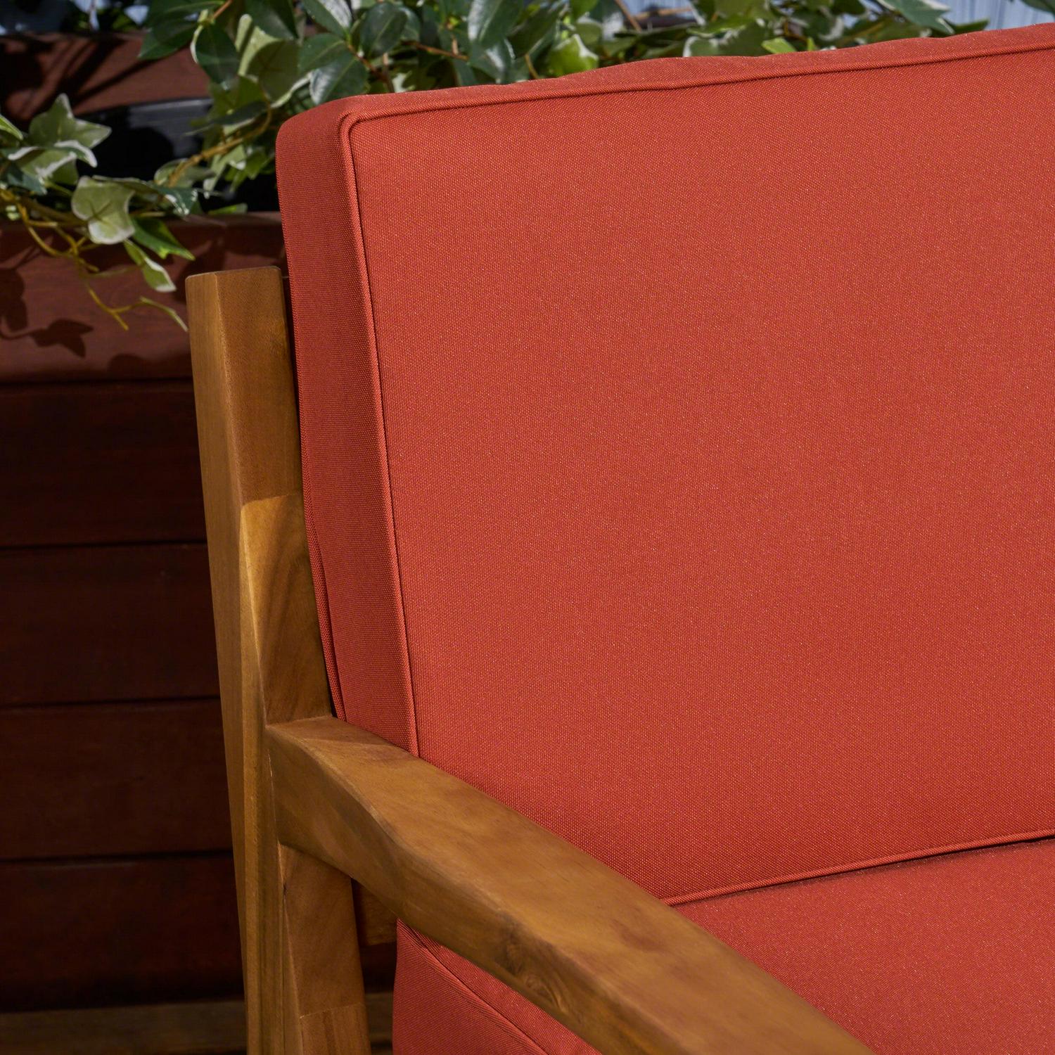 Wilcox Outdoor 5 Piece Acacia Wood Sectional Sofa Set with Cushions, Teak, Red