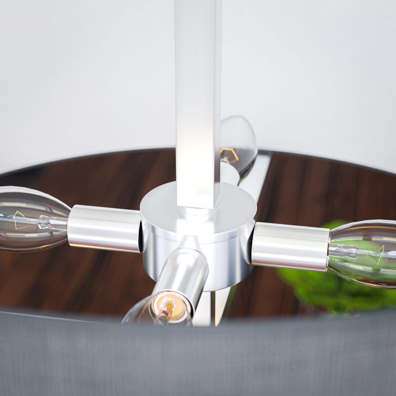 – Classic gray: a soft, warm gray complements the brushed steel finish and contrasting shapes of this pendant, creating a cohesive look