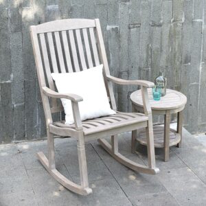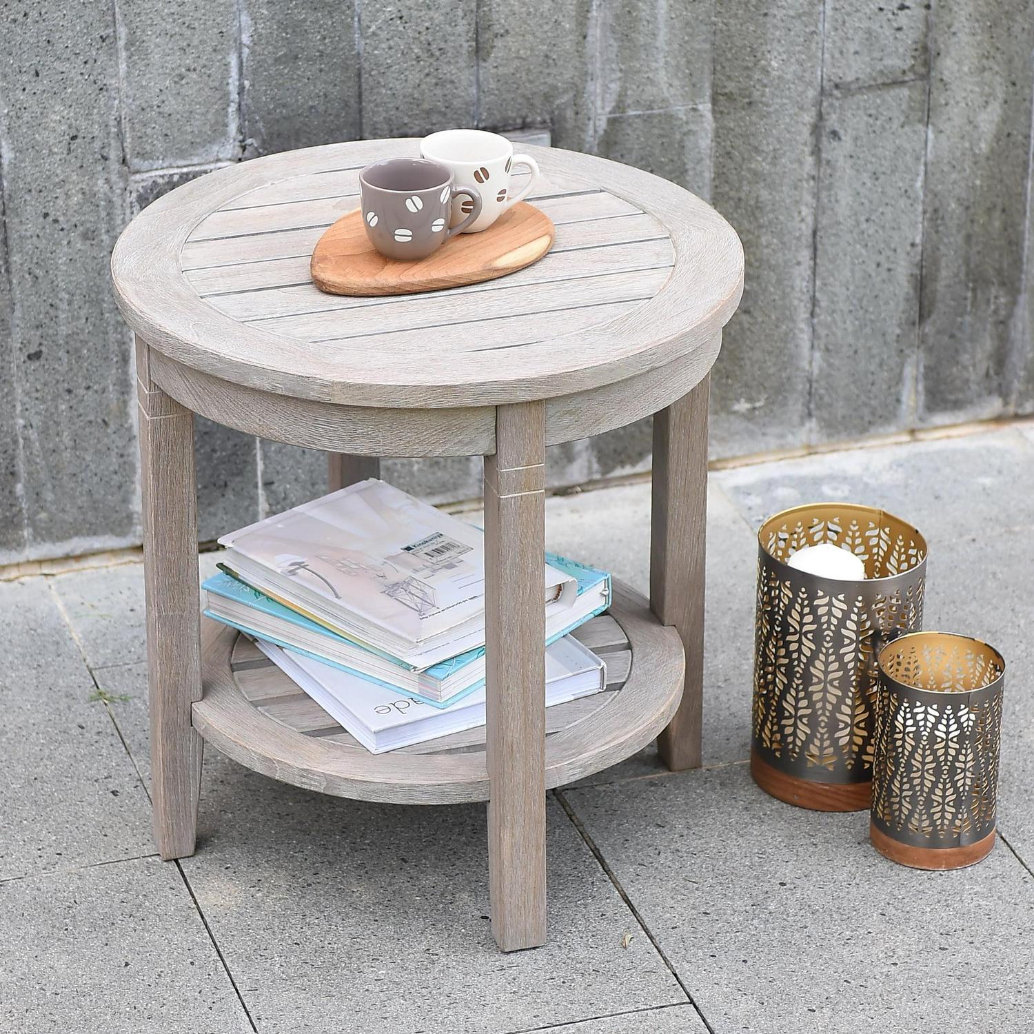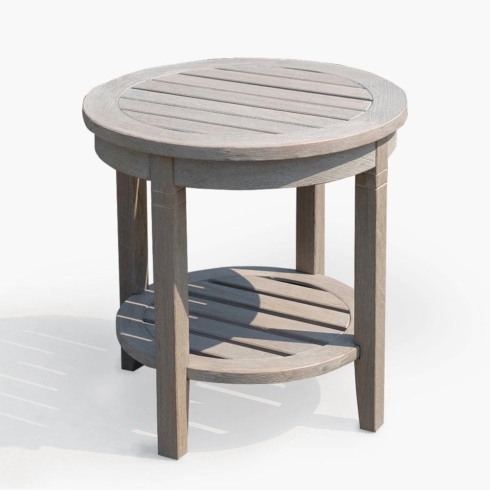 Willem Solid Teak Patio Round Side Table, Weathered Gray