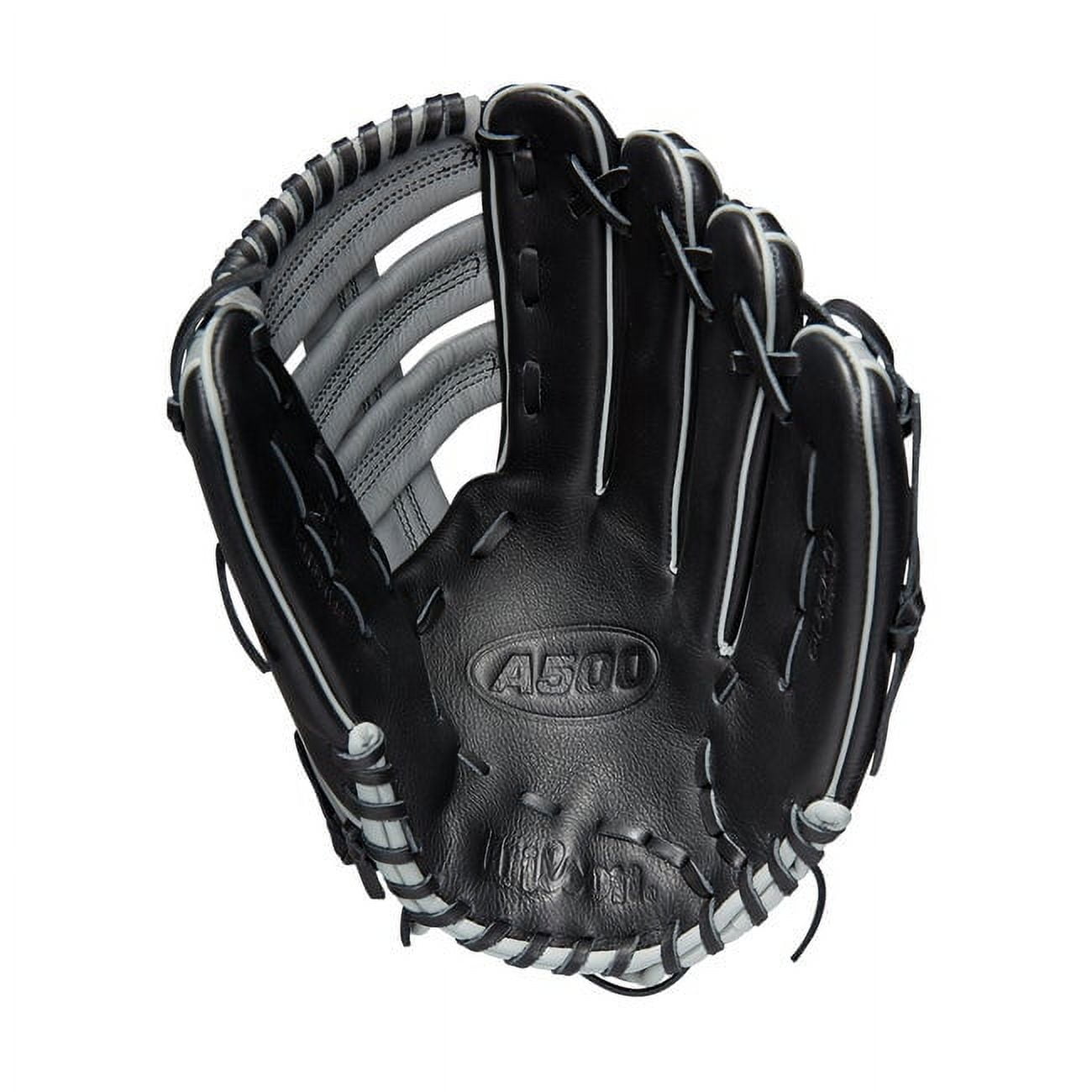 The 12.5” A500, ideal for youth ballplayers who get most of their work in the outfield, features an Open Single Post Web and extra-long reach to extend for fly balls. The all-leather construction offers a sturdy and lightweight feel with Grey and Black Top Grain leather, Grey binding and dual welting. Engineered for youth players, the A500 boasts a Quick Fit Wrist elastic system that adjusts to hug the wrist, and finger stalls are short and narrow for a steady control of the glove.