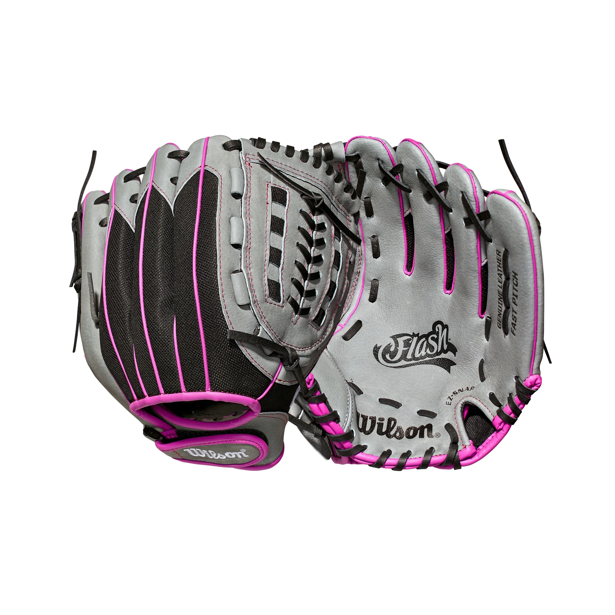 The Flash series youth fastpitch gloves from Wilson feature flexible materials and thoughtful designs that come together to produce the easiest glove for young hands to close. The Flash offers a snug fit and more control to the player with a larger pocket to increase success on the field.