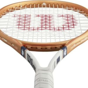 ” Lighter and more maneuverable Pro Staff String Mapping provides a denser string bed for excellent precision and feel New Ergonomic End Cap yields improved comfort and playability Modern design gives nod to classic Pro Staff heritage with black elastic base, exposed carbon fiber weave decal at the tip and red/yellow pinstripes along the throat”