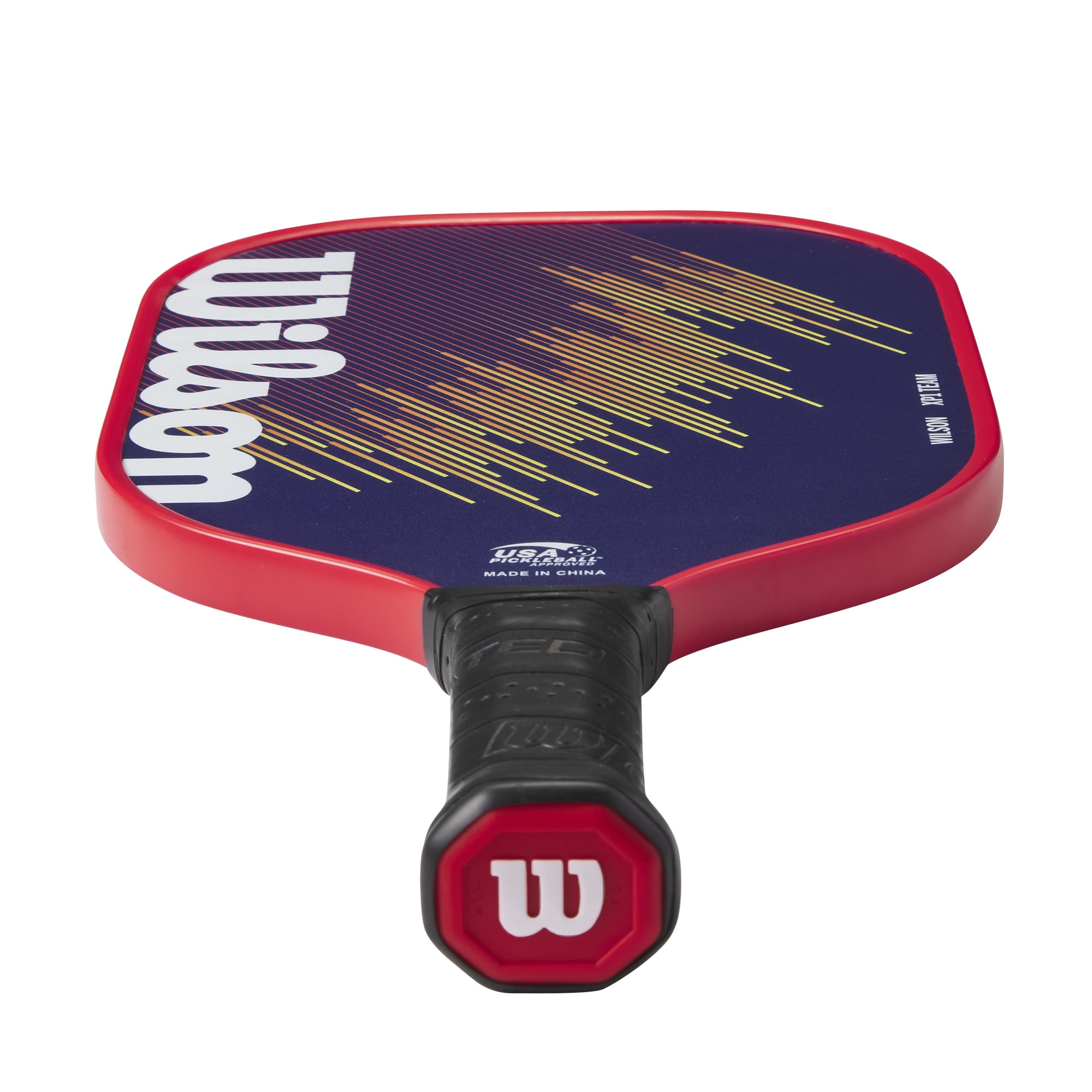 Polymer Power Comb Technology in the core maximizes feel and durability Shock Stop Dampening edge guard extends the life of your paddle by protecting against abrasions Graphite Composite Hitting Zone provides additional durability and reliability on the court Shape creates large sweet spot for impressive power on off-center contact USAPA approved Brand: Wilson Sport: Pickleball Color: Blue