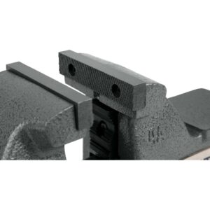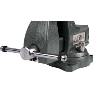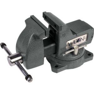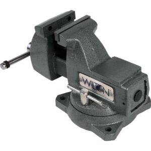 Every good home workshop, garage, or wood shop needs a reliable, heavy-duty vise bench. When in need, look no further than the Wilton Tools 4-Inch-Wide Jaw Steel Swivel Base Mechanics Vise. This general-purpose bench vise is ideal for clamping down lumber, pipe, and more while you drill, saw, or fasten. Crafted out of high strength steel, this shop vise features a double lock down swivel base and an extra large anvil work surface that’s great for hammering. Specially-designed jaws are great at holding irregular materials, up to 4.5 inches of pipe, and has a 30,000 PSI ductile iron strength that won’t let go. Built for rugged use and extended life, the Wilton Tools Mechanics Vise is ready for years of heavy-duty use. Upgrade your shop or garage with an extra strong vise that does it all.