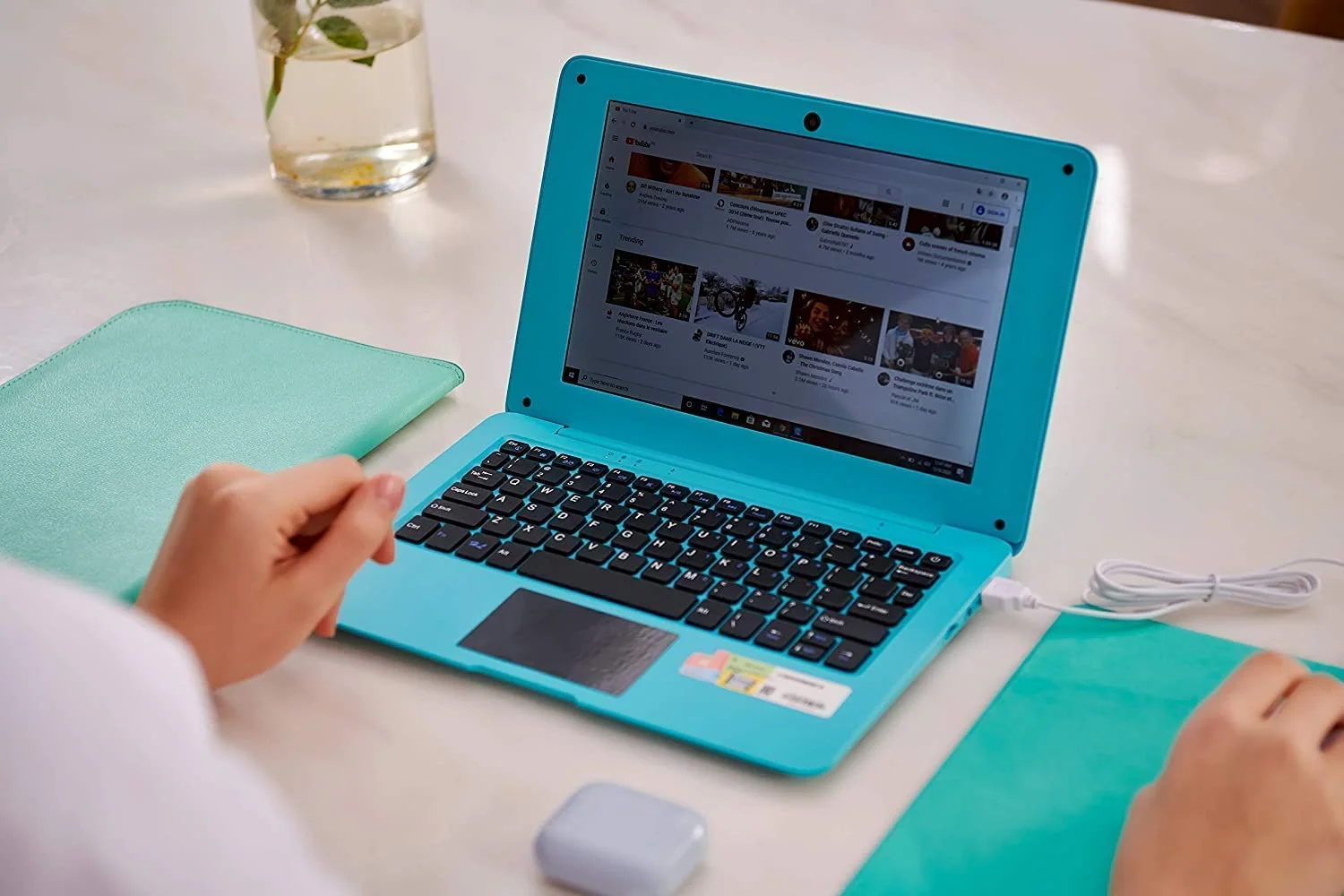 Windows 10 Laptop 10.1 Inch Quad Core Notebook Slim and Lightweight Mini Netbook Computer with Netflix YouTube Bluetooth WiFi Webcam HDMI, and Laptop Bag,Mouse, Mouse Pad, Headphone (Blue)
