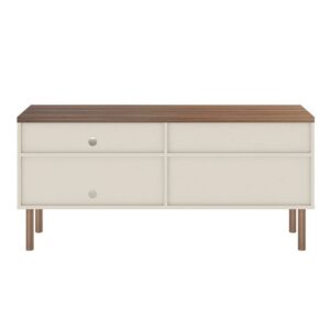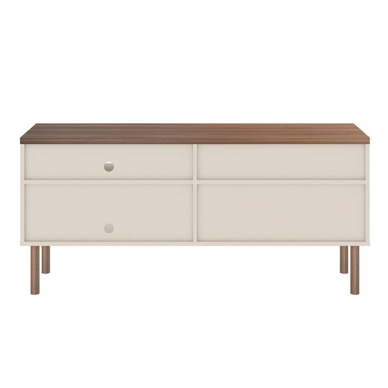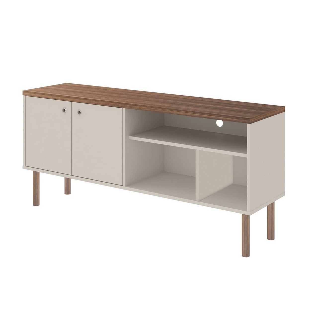 Windsor 53.54 Modern TV Stand with Media Shelves and Solid Wood Legs in Off White and Nature