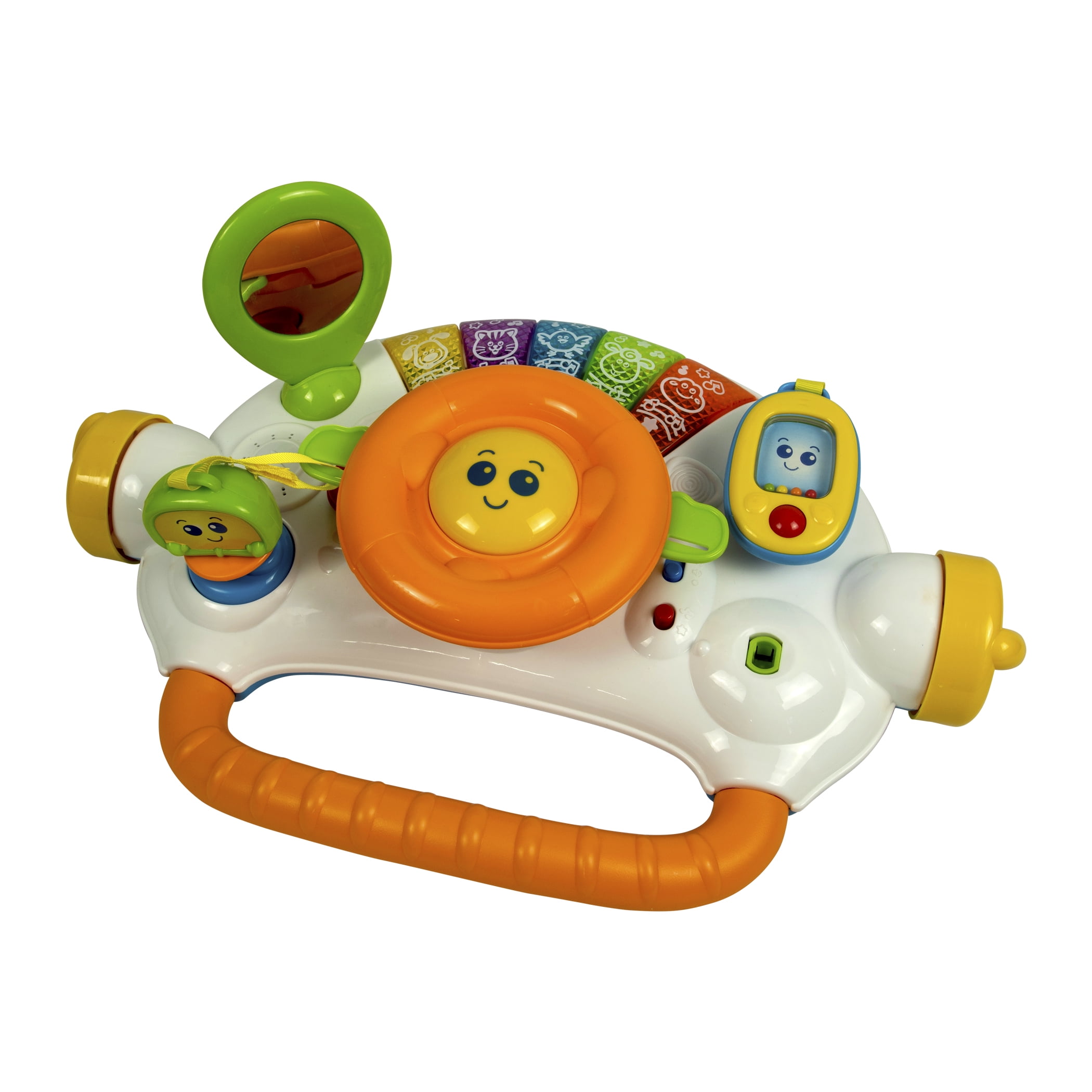 Winfun 0846 5 in 1 Driver Play gym Walker Detachable car key and mobile phone. 3 AA (Included) Detachable legs for easy carry and storage. Light Up Piano Keyboard Sturdy legs with textured wheels include safety locks. Great Unisex Gift item for Ages Group 3 to 36 Months
