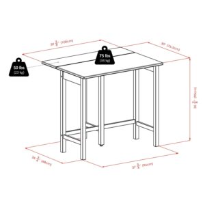 – Drop leaf folded dimensions: 39.37Lx 20.7Wx 35.43H in.