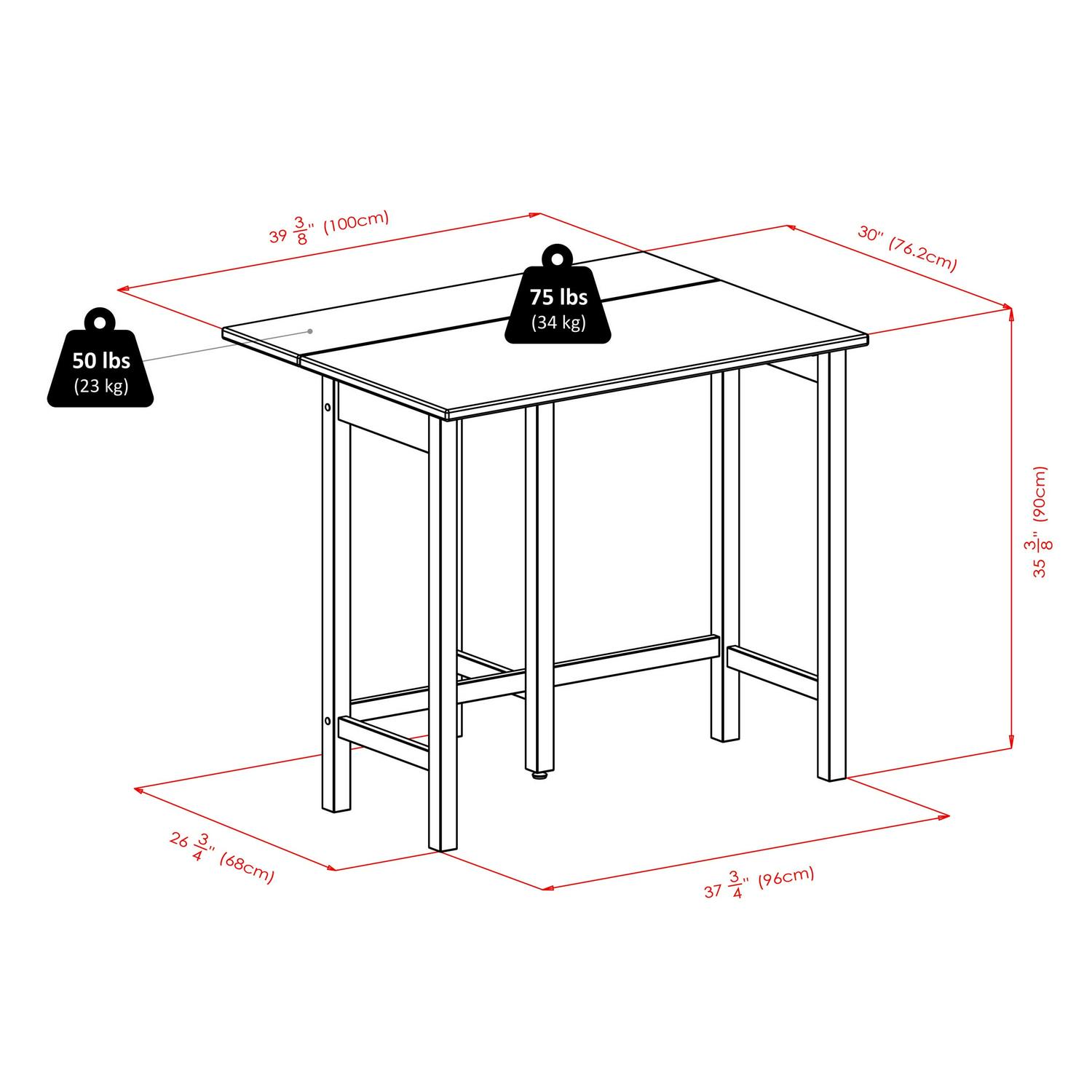 - Drop leaf folded dimensions: 39.37Lx 20.7Wx 35.43H in.