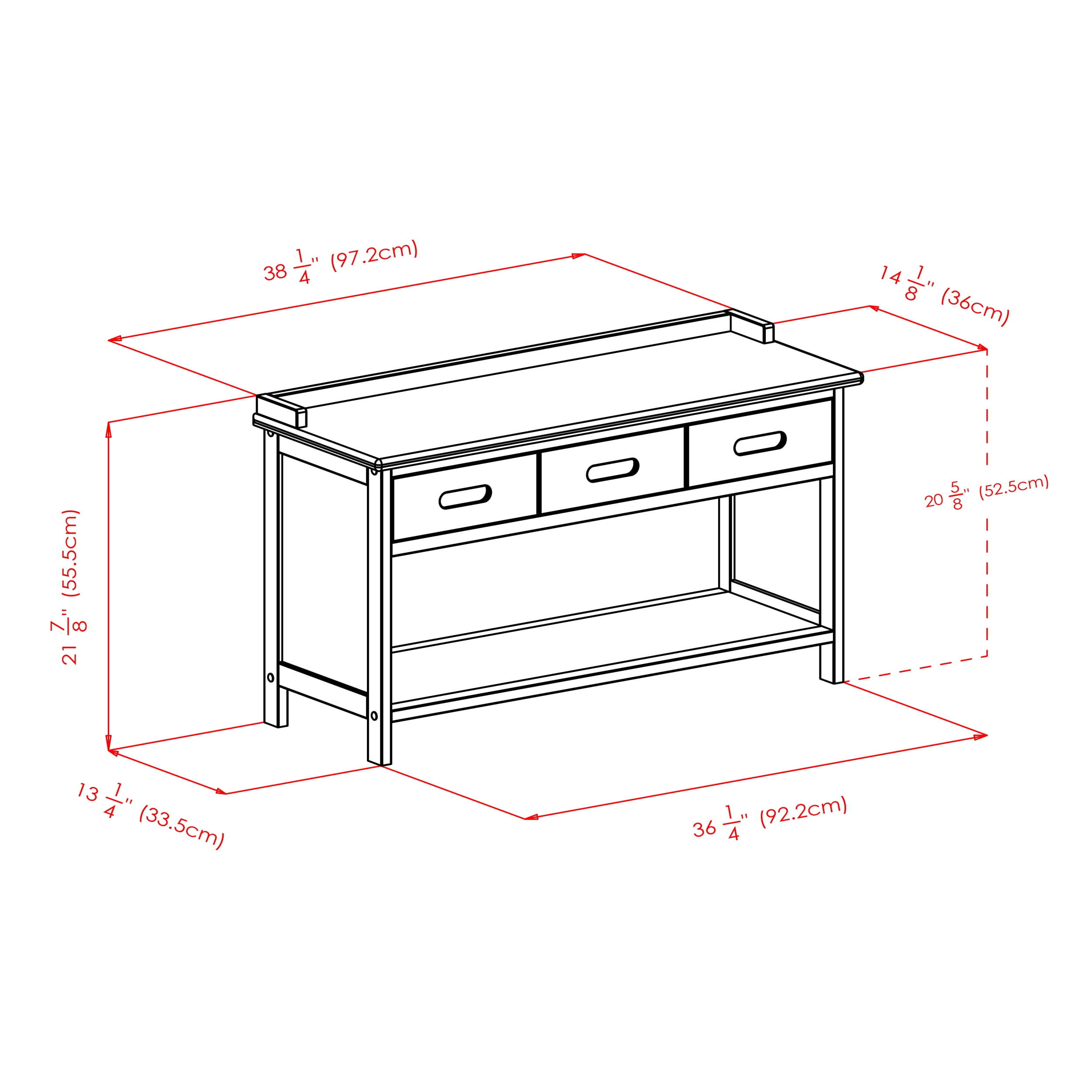 Winsome Wood Adriana Storage Hall Bench, Walnut: Adriana collection Bench with 3-drawers and shelf Transitional style Walnut finish Assembled dimensions: 38.27”W x 14.17”D x 21.85”H Seat (within rim) dimensions: 35.90”W x 13.39”D Seat height: 20.67” Drawer (interior) dimensions: 9.45”W x 11.42”D x 3.85”H Shelf dimensions: 34.72”W x 12.87”D x 10.24”H Clearance under shelf: 2.75”H Static weight capacity: 220lbs seating, 25lbs shelf, 15lbs per drawer Item weight: 43.95lbs Constructed of solid and composite wood Ships in 1 box Box dimensions: 41.25”L x 19.25”W x 9”H Shipping weight: 51.60lbs Model #94038