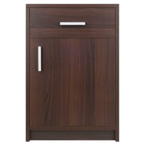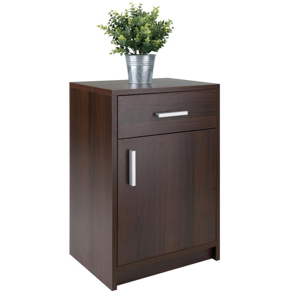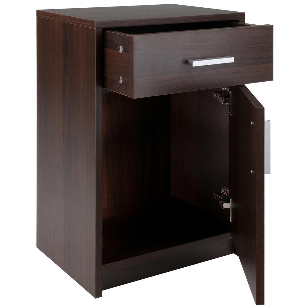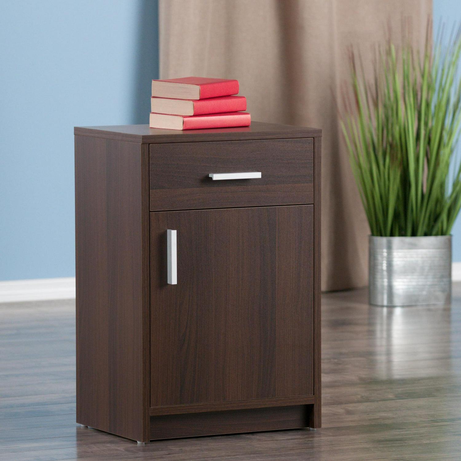 If you’re looking for plenty of storage in a nightstand or side table, the Winsome Wood Astra Accent Table is an ideal addition to any are of your home. Finished in a rich cocoa, the table features a roomy drawer and a large cabinet with door. Use it in the living room as an end table to keep personal electronic devices and as a convenient place for a reading lamp. Or put it to good use in a home office as a printer stand with paper storage below. At 15.75″W and 12.48″D, this compact table is perfect for apartments, dorm rooms, or anywhere you can use a side table with lots of storage space. Constructed of sturdy composite wood with modern matte-silver plastic drawer and cabinet pulls. Conveniently ships in one box that includes the hardware necessary for assembly.