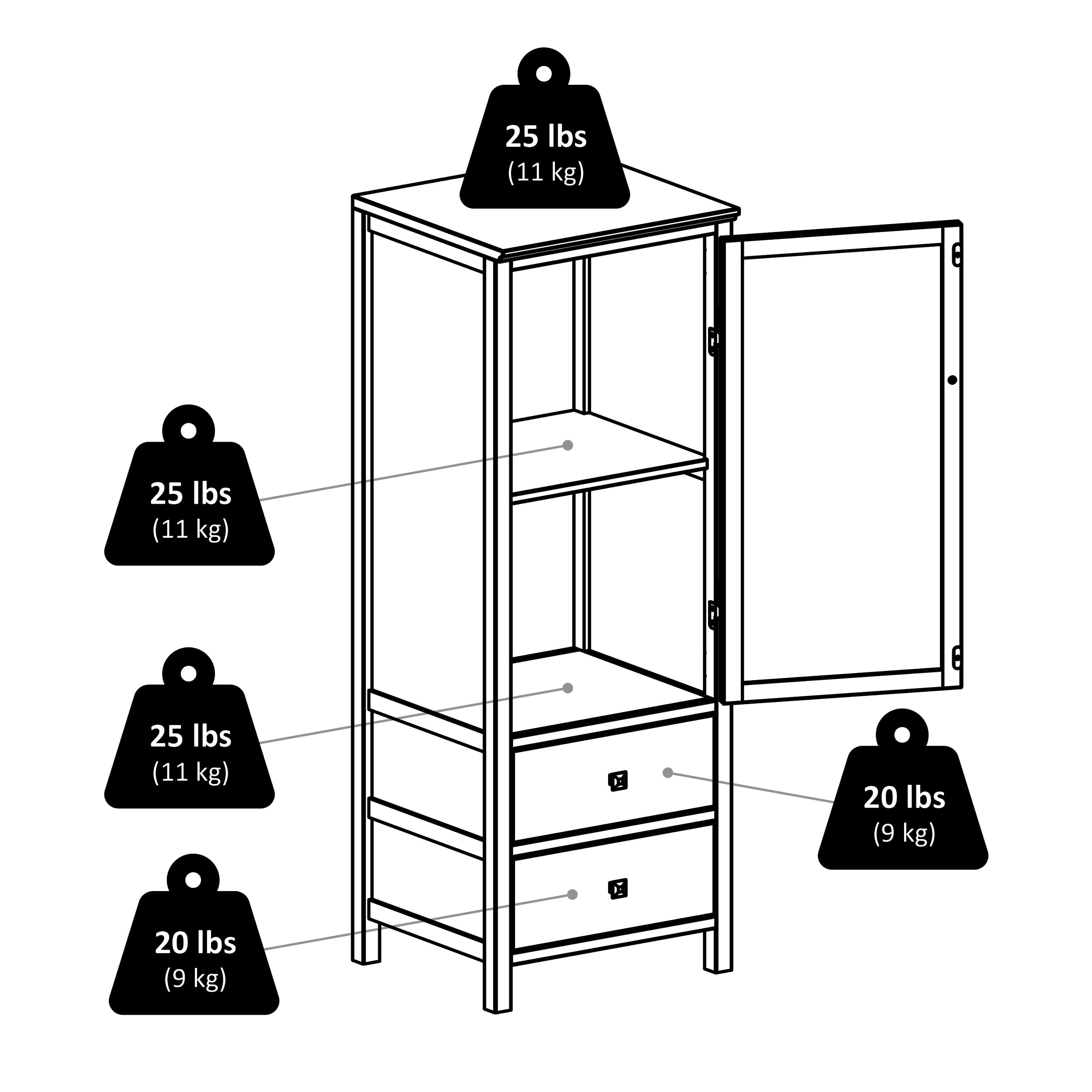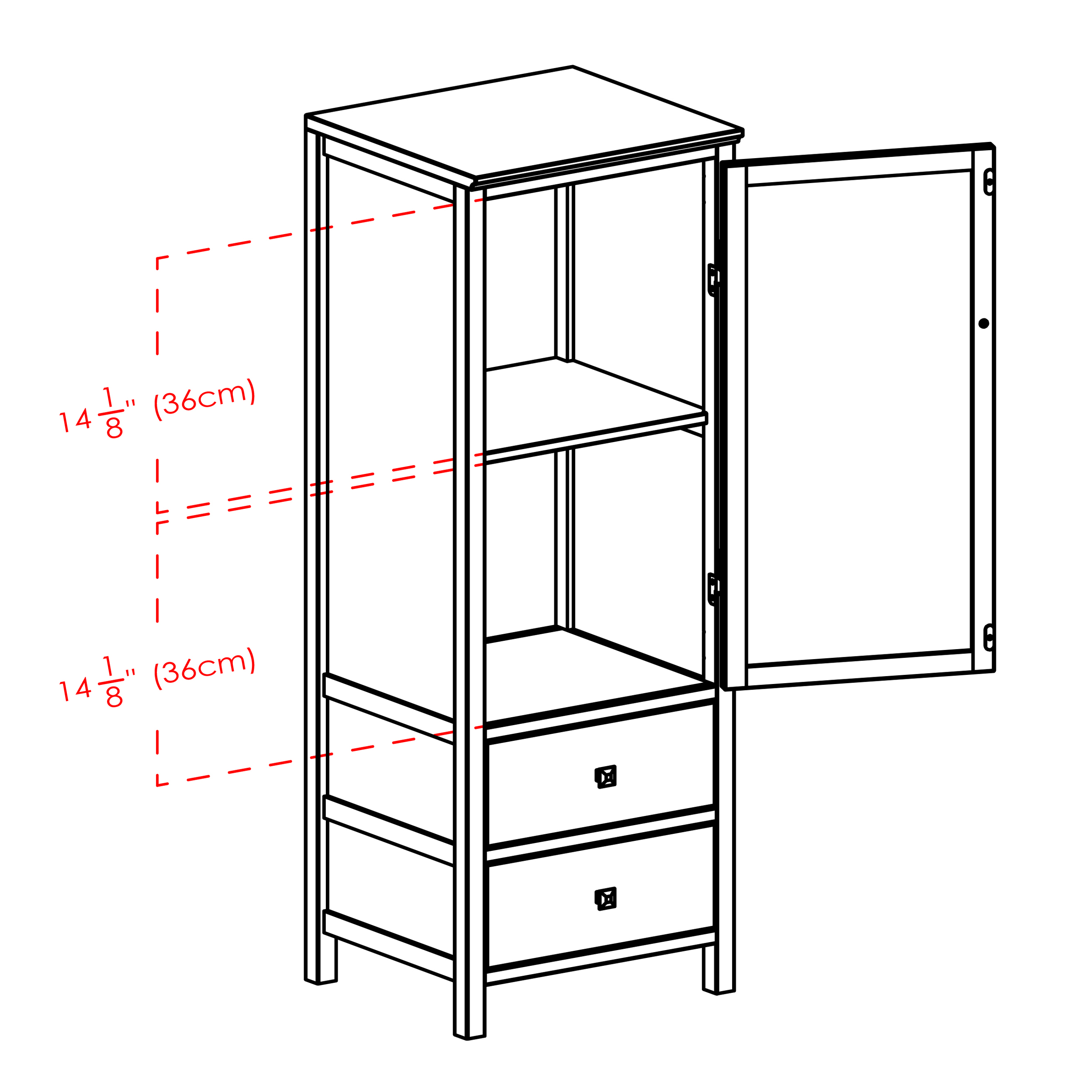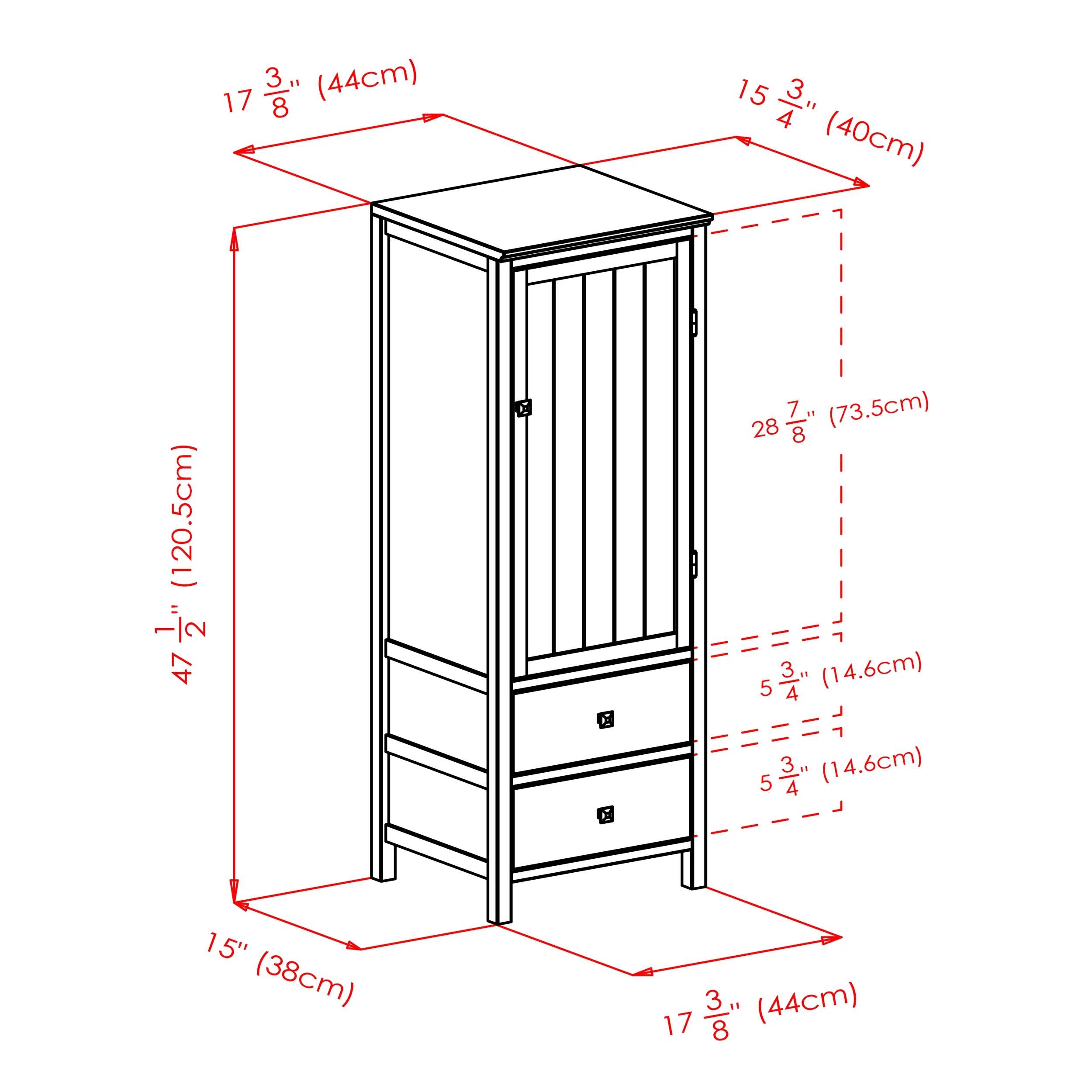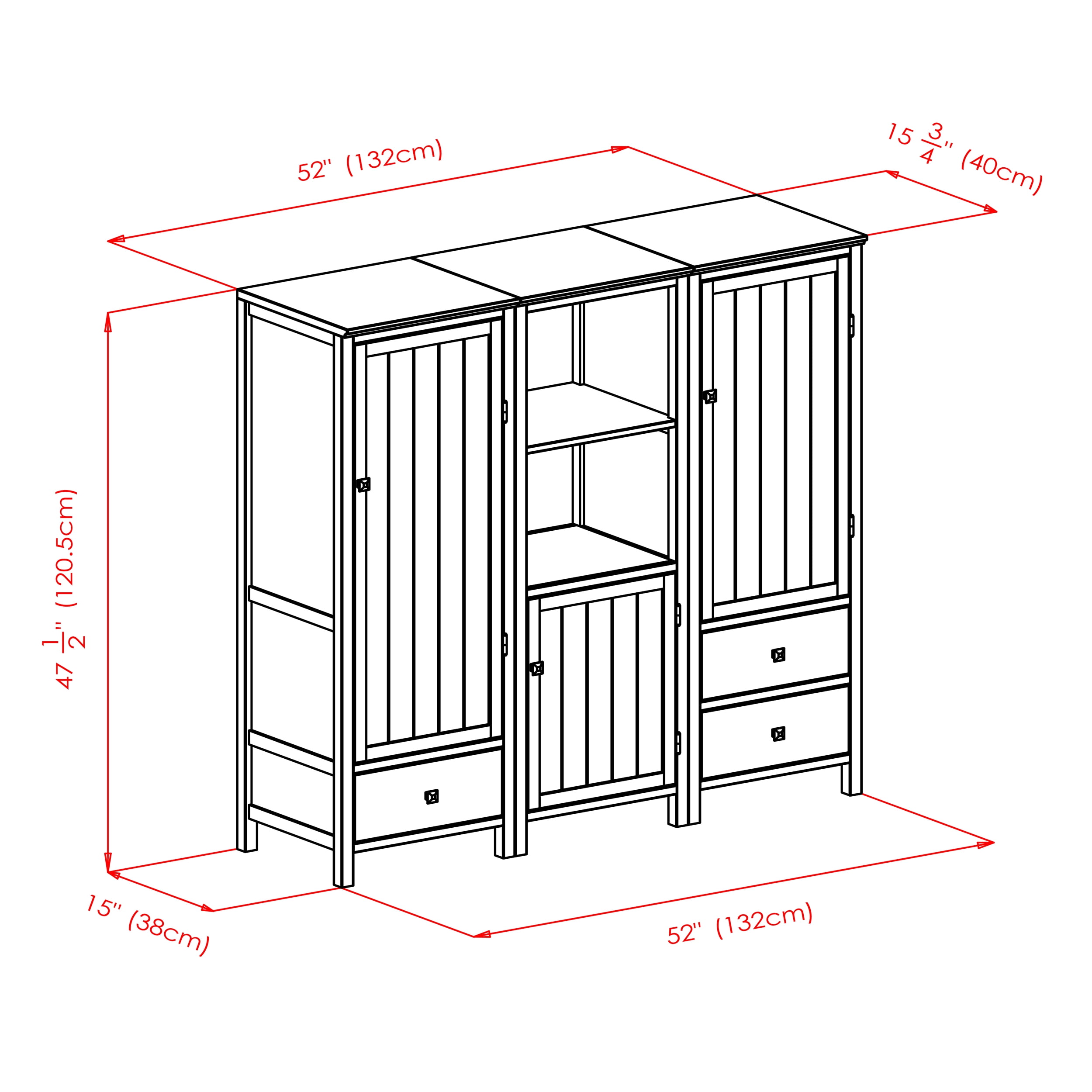 Winsome Wood Brooke 3-Piece Jelly Cupboard Modular Set, Walnut Finish: Overall dimensions of each cupboard: 17.3″W x 15.75″D x 47.4″H