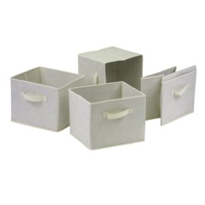 Winsome Wood Capri 5-Pc Storage Set, 2-Section Bookcase and 4 Foldable Beige Fabric Baskets, Espresso Finish