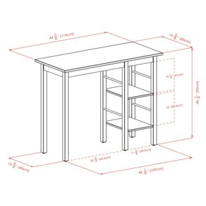 The Winsome Wood Egan Breakfast Table is wonderful in the kitchen or to be used as a work table in your home office. Its a unique style exhibiting functionality paired with modernity which is a must for any home. It features two open shelves 11.61 W x 15.75 D, which is plenty of room for displaying dishes or books. It utilizes its stature by including two vertically aligned platforms. Side rails guard two of the four sides, offering easy accessibility along with content security. Ample amount of space under the table, 32.4H, so you can slide under your stool (not included) when not in use, saving your precious space. The slender, yet sturdy structural design paired with solid wood components results in reliable, natural beauty. Conveniently packed and shipped in 1 box, that includes the hardware necessary for assembling. Replacement part request can be submitted directly to the manufacturer within 60 days from date of purchase.