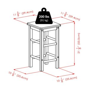 - Stool assembled dimensions: 11.57″W x 11.57″D x 21.06″H ea.