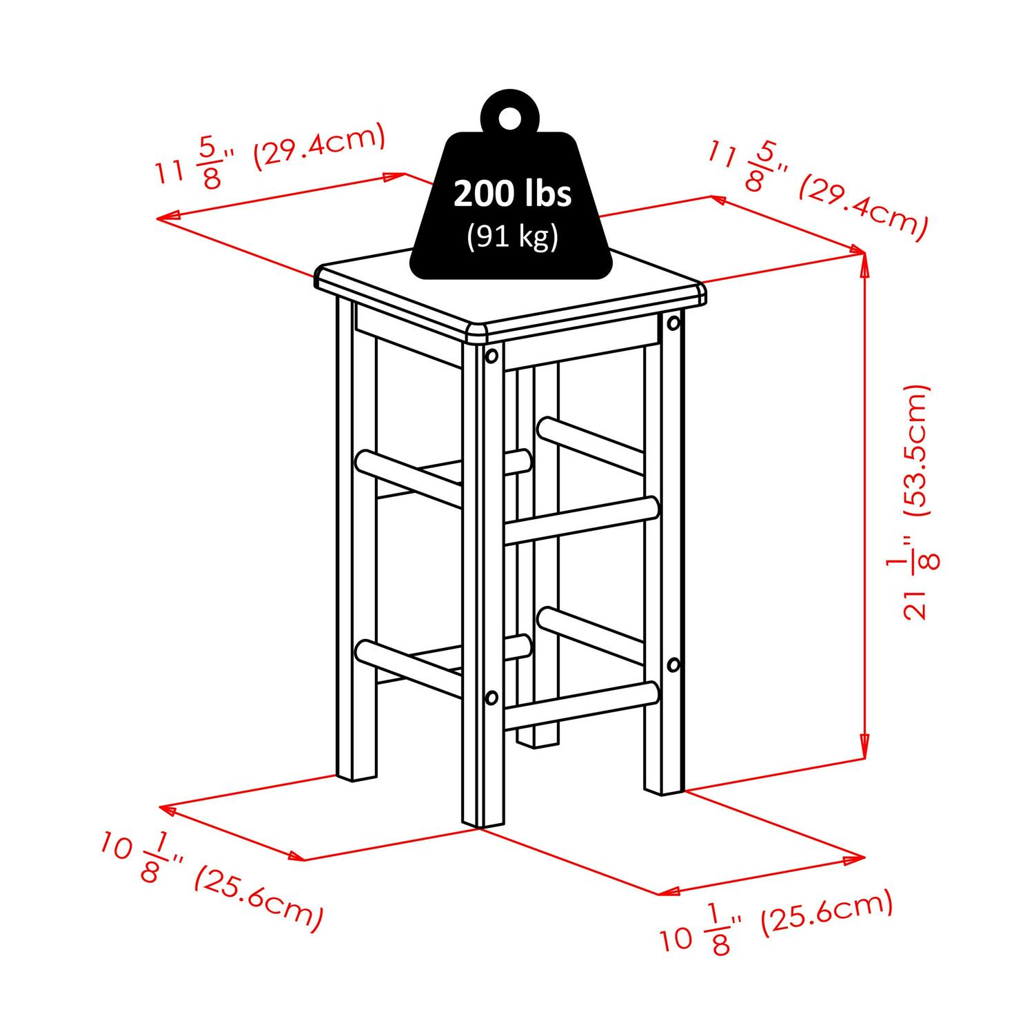 – Stool assembled dimensions: 11.57″W x 11.57″D x 21.06″H ea.