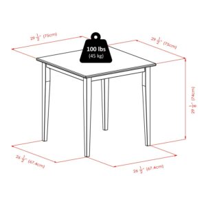 - Table dimensions: 29.53L x 29.53W x 29.13H inches