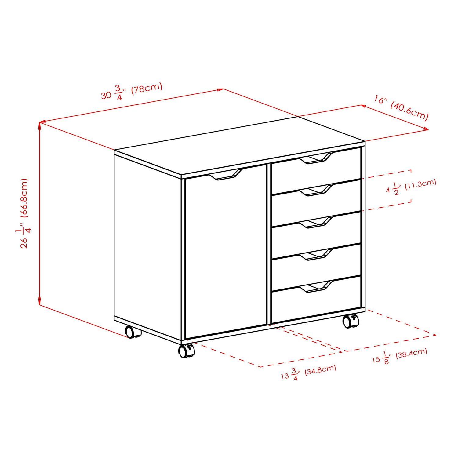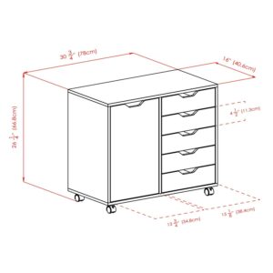 The Winsome Wood Halifax 2-Section Mobile Storage Cabinet is ideal for all of your organizational needs. With its clean, simple design, and convenient cut-out handles, you can use it anywhere. Keep it in a walk-in closet to expand your storage for clothing, shoes, handbags and accessories. Or use it in a child’s bedroom to reduce the clutter of toys. This Halifax Cabinet features five gliding drawers and one spacious cabinet, making it adaptable to a variety of storage needs. The unit has five wheels, two of which lock, for easy mobility as well as a way to keep it securely in place. Constructed of sturdy composite wood in a sleek black finish with white drawer interior for easy search and grab of items within. Conveniently packed and shipped in 1 box, that includes the hardware necessary for assembling.