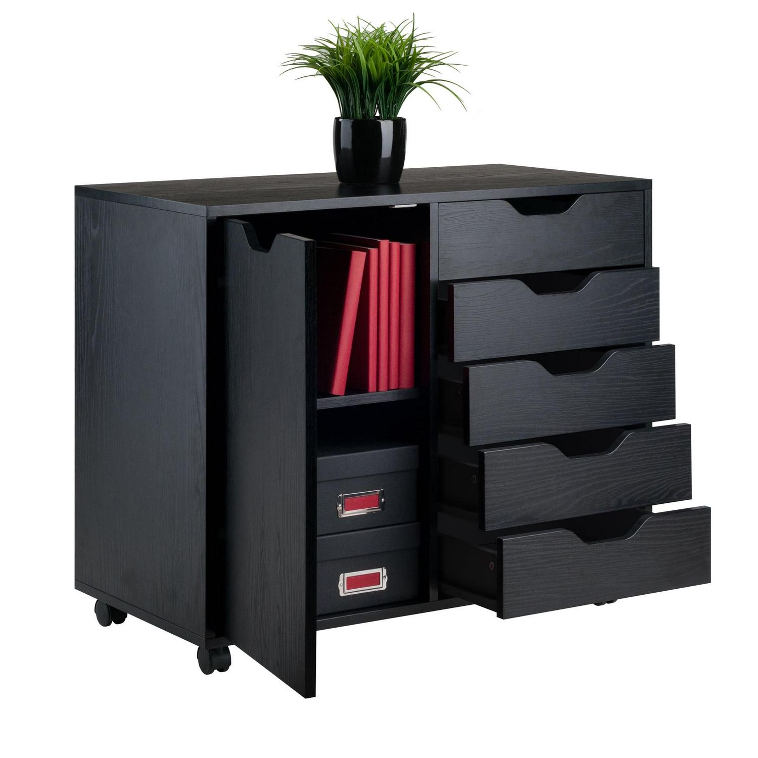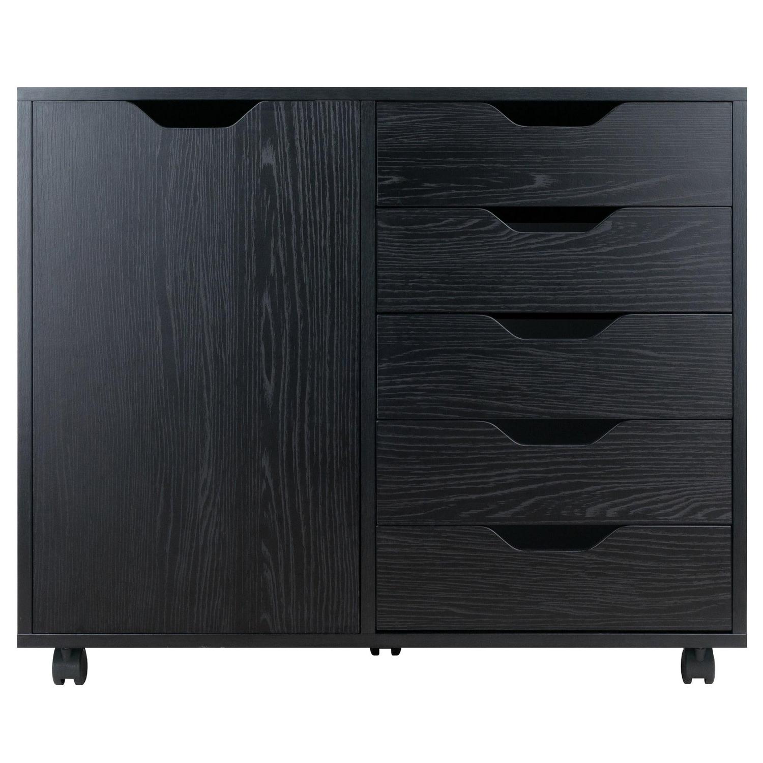 Winsome Wood Halifax 2-Section 5-Drawer Mobile Storage Cabinet, Black: