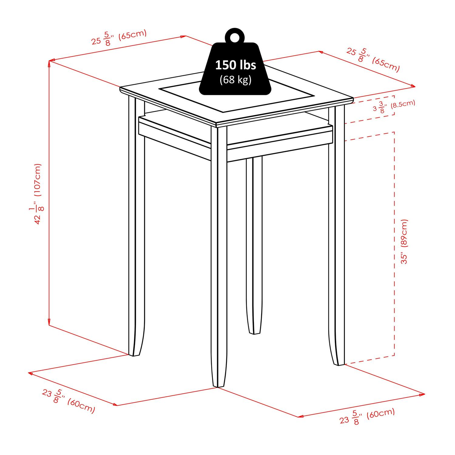 - Table Height: 42 in