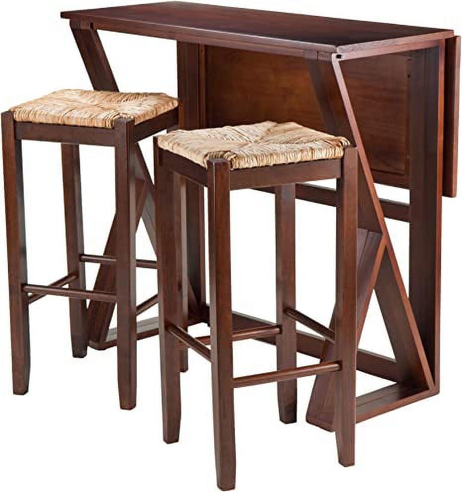Winsome Wood Harrington 3-Pc Set, Drop Leaf Table and 2 Rush Seat Bar Stools, Walnut Finish