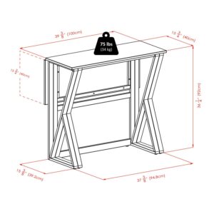 Harrington Drop Leaf High Table is a perfect table for your gathering and dinner. Table features a drop leaf extension with a surface area of 39.37″W x 15.75″D. Table dimension when the drop leaf is down is 39.37″W x 16.59″D x 36.22″H. Fully extended table size is 39.37″W x 31.50″D x 36.22″H. Constructed from solid wood in warm Walnut Finish. Assembly Required.Fully extended table size 39.37″W x 31.50″D x 36.22″H. Table closed 39.37″W x 16.59″D x 36.22″H.Each Drop Leaf has surface area of 39.37″W x 15.75″D. Gate legs to support extended top.Constructed from solid wood in warm Walnut Finish. Assembly Required. This product meets the oversized requirement per UPS/FedEx. The shipping weight reflected is the dimensional weight. This product also meets the large package requirement per UPS/FedEx. The estimated shipping cost will include this fee. Large package is $70.00; applied when length plus girth [(2 x width) + (2 x height)] combined exceeds 130 inches. Additional Handling charge of $10.50 applied where a package’s longest side exceeds 48 inches in length; the second longest side exceeds 30 inches in length; or total weight is greater than 70 lbs.This product meets the oversized requirement per UPS/FedEx. The shipping weight reflected is the dimensional weight. This product also meets the large package requirement per UPS/FedEx. The estimated shipping cost will include this fee. Large package is $70.00; applied when length plus girth [(2 x width) + (2 x height)] combined exceeds 130 inches. Additional Handling charge of $10.50 applied where a package’s longest side exceeds 48 inches in length; the second longest side exceeds 30 inches in length; or total weight is greater than 70 lbs.