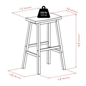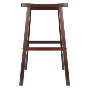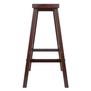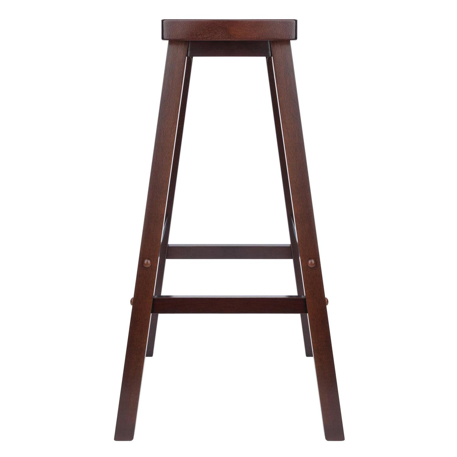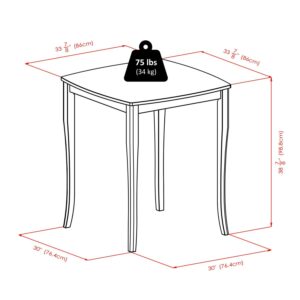 Winsome Wood Inglewood 3-Pc Dining Set, High Table & 2 Saddle Seat Bar Stools, Walnut: Transitional style Inglewood collection Walnut Finish Constructed of solid wood Tall square tabletop table with contoured, cabriole legs; two saddle seat bar stools Ships in 3 boxes Box 1, item #94733 Table dimensions: 33.86″W x 33.86″D x 38.9″H Clearance underneath table top: 35.43″ (measured from apron) Distance between legs: 25.67 27.32 Item weight: 39.05 lbs Box dimensions: 40″W x 40″L x 4.6″H Shipping weight: 47 lbs Box 2 & 3, item #94089 Bar height stool with saddle like seat Overall dimensions: 17.91 W x 15.79 D x 28.86 H Saddle seat dimensions: 17.48 W x 8.9 D Foot print: 17.9 W x 15.8 D Item weight: 11.15 lbs Static weight limit: 220 Single stool packed per box Box dimensions: 13.10 W x 29.75 L x 3.25 H Shipping weight: 12.55 lbs Assembly required Model kit #94380