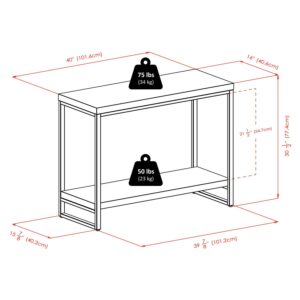 This Jared Hall Console Table, Espresso, is a stylish modern piece that complement almost any decor style. It is crafted from durable enamel-finished metal tube frames in a lovely pewter color. The black wood top and shelf give it a sense of elegance and a designer look. This contemporary console table stands at 30″, which is just right to display your favorite art work, photos or even floral arrangements.
