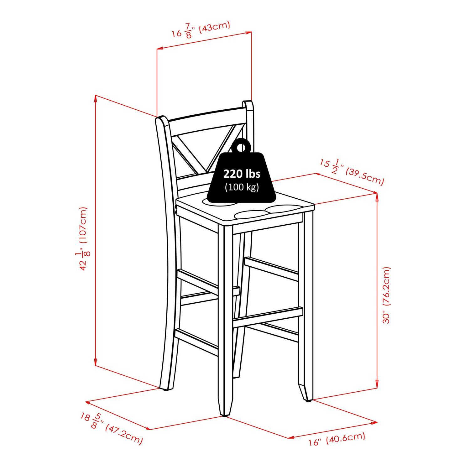 - Seat Height: 30 in