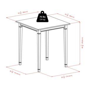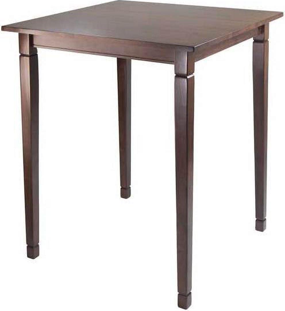 This 3-Pc Pub Table set comes with a Kingsgate High Table features grooved detailing on four legs. Table assembled size is 33.86″W x 33.86″D x 38.90″H plus Two V-Back Bar Height Stools. Each Stool stands at 16.93″W x 19.21″D x 42.17″ in overall size. Seat dimension is 16.54″ to 14.26″W x 15.55″D. Back rest is 16.93″W x 12.17″H. Seat height is 30″ from ground. Both table and stools are made from solid wood in warm walnut finish. Assembly Required. Table: 40x40x4.5; Table: 40x40x4.5;