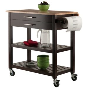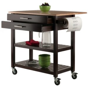 Winsome Wood Langdon Drop Leaf Kitchen Cart, Cappuccino and Natural Finish