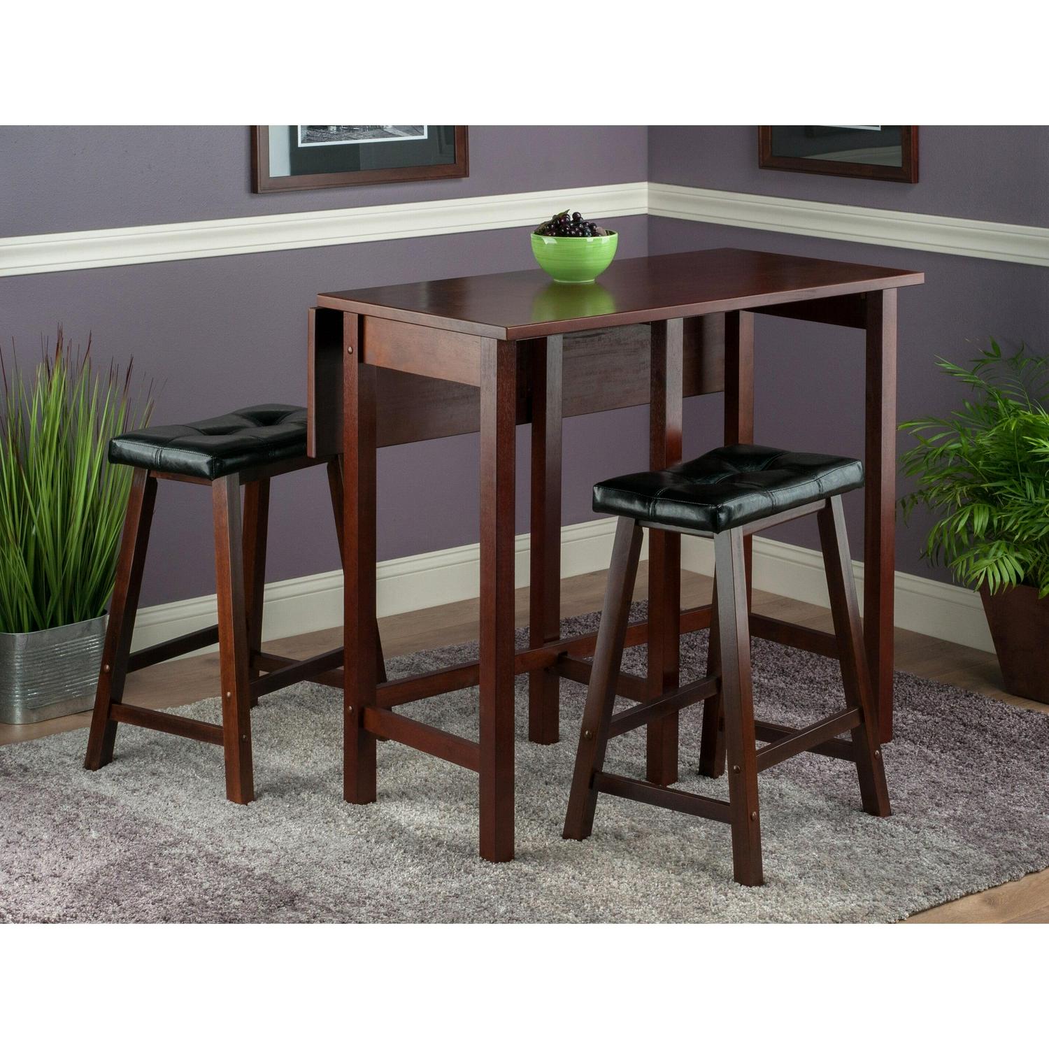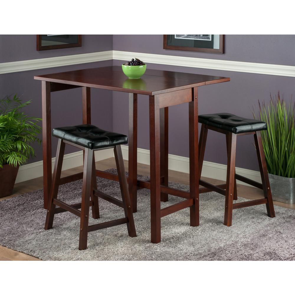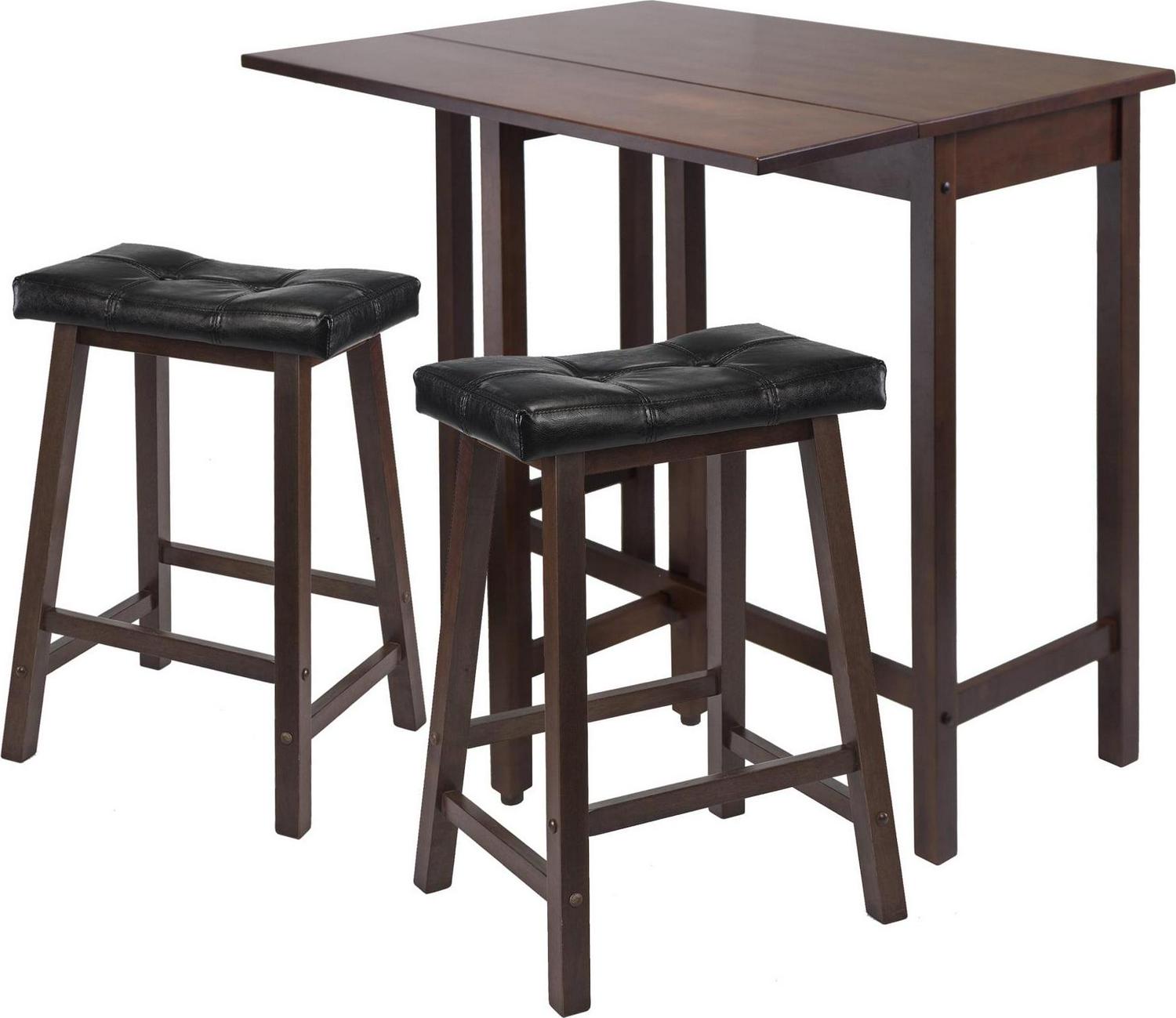 Winsome Wood Lynnwood 3-Pc Set, Drop Leaf Table and 2 Cushioned Saddle Seat Stools, Walnut Finish