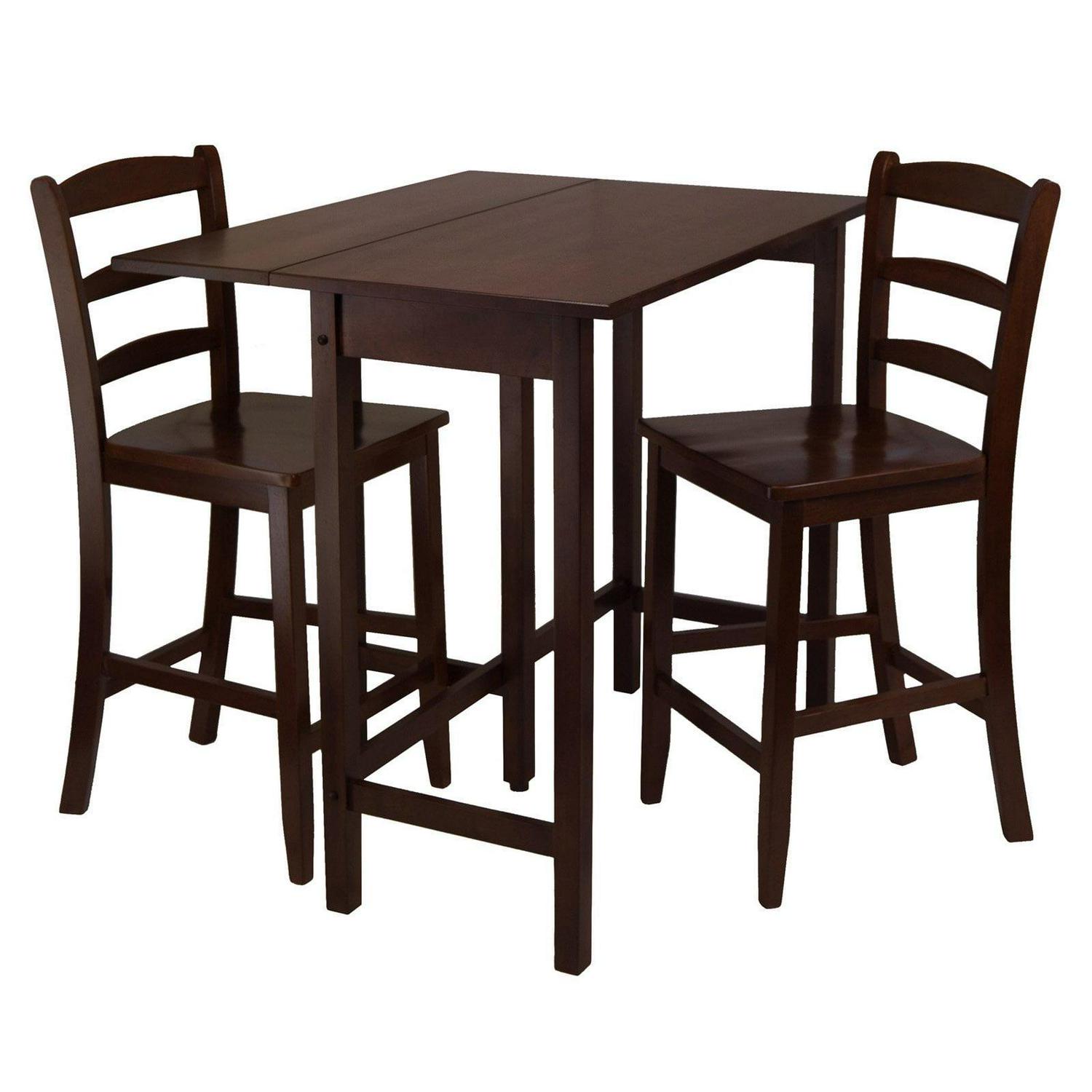 Winsome Wood Lynnwood 3-Pc Set, Drop Leaf Table & 2 Ladder Back Counter Stools, Walnut: