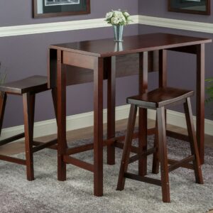 Winsome Wood Lynnwood 3-Pc Set, Drop Leaf Table and 2 Saddle Seat Counter Stools, Walnut Finish