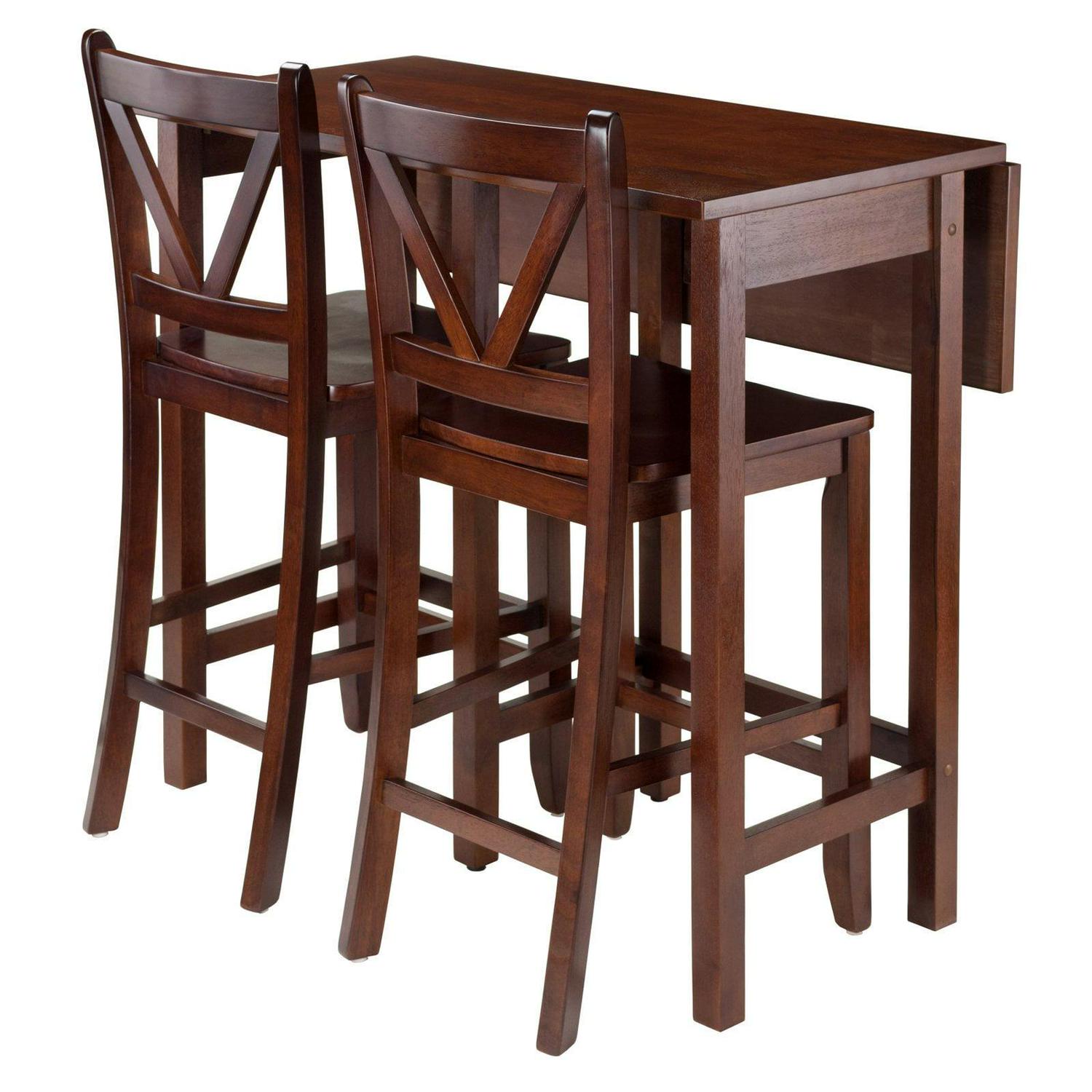 Winsome Wood Lynnwood 3-Pc Set, Drop Leaf Table and 2 V-Back Counter Stools, Walnut Finish