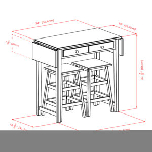The Winsome Wood Mercer Double Drop Leaf Island with Stools is a perfect spot for breakfast in the kitchen or a casual meal in the den. The table has double drop leaves to extend the table wide enough for dinner for two or a possible work-at-home space with plenty of room to spread out. Ideal for apartment living or smaller rooms, the leaves fold and the two stools can be stowed underneath. Two drawers in the table provide space for cutlery, napkins, or the odds and ends that always seem to migrate to an “everything” drawer. The stools have squared legs and double crossbars for stability, and they can be used as extra seating when guests arrive. The set is made of solid wood in a smooth cappuccino finish. Conveniently packed and shipped in 1 box that includes the hardware needed for assembly.