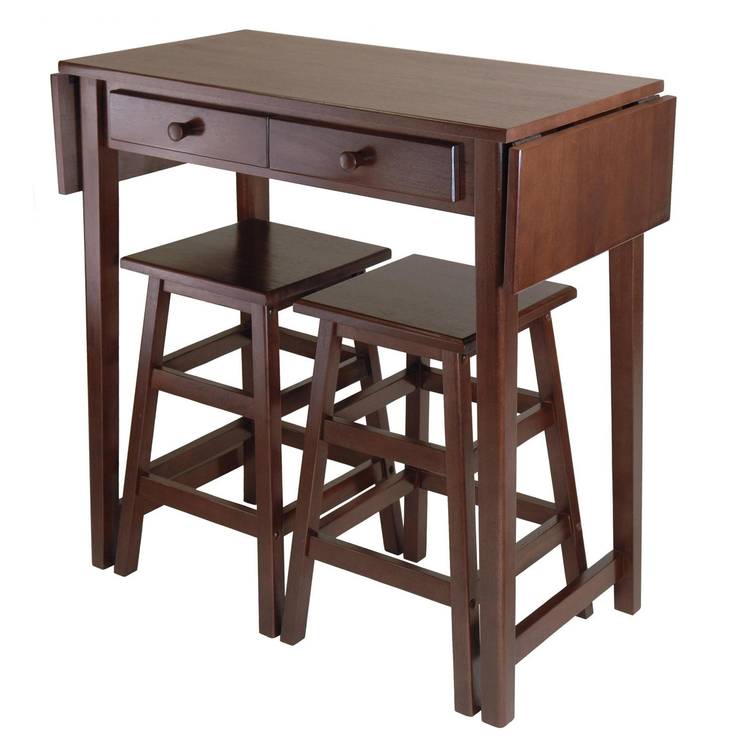 Winsome Wood Mercer 3-Pc Drop Leaf Island with 2 Stools, Cappuccino: