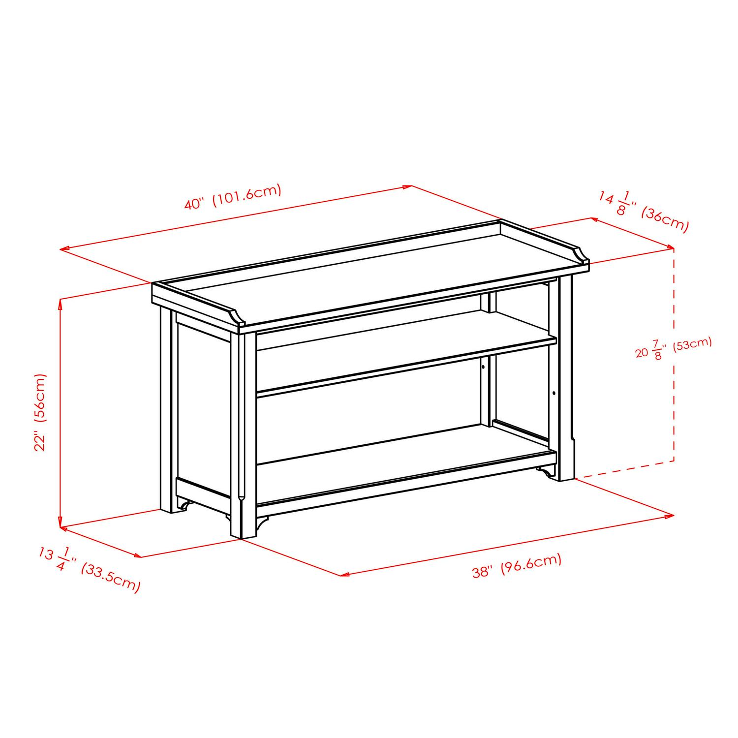 - Assembled Product Dimensions (L x W x H): 40.00 x 14.20 x 22.00 Inches