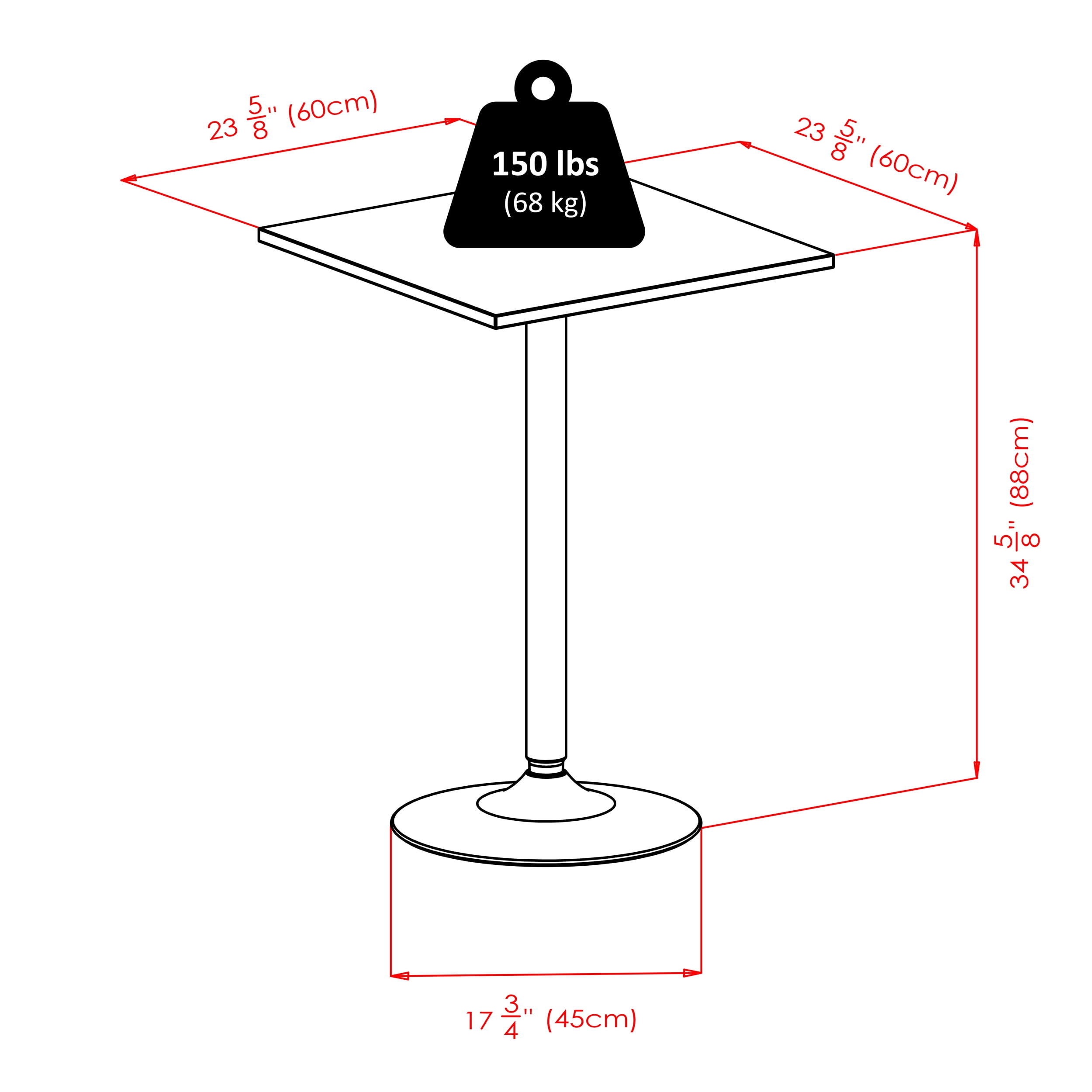 Winsome Wood Obsidian 3-Pc Dining Set, Square Table and 2 Round Seat Counter Stools, Black: Transitional style Obsidian collection Square pub table; two counter stools Black finish Assembly required; hardware included Ships in 2 boxes Box 1, item #20522 Counter height pub table Assembled dimensions: 23.62″W x 23.62″D x 34.65″H Base diameter: 17.72″ Static weight capacity: 150lbs Constructed of MDF and veneer top, base is metal post with textured finishing Item weight: 21.20lbs Box dimensions: 27.75″L x 27.25″W x 6.25″H Shipping weight: 25.20lbs Box 2, item #20274 Two round seat, square leg counter stools Assembled dimensions: 13.39″W x 13.39″D x 23.86″H Static weight capacity: 220lbs Item weight: 8.60lbs Box dimensions: 25″L x 14.25″W x 8″H Shipping weight: 19.20lbs Model kit #20323