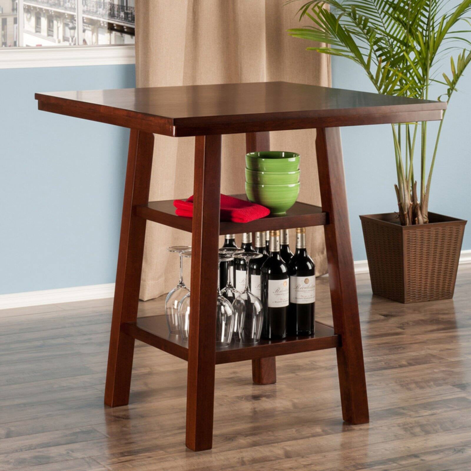 Winsome Wood Orlando High Table with Shelves, Walnut Finish
