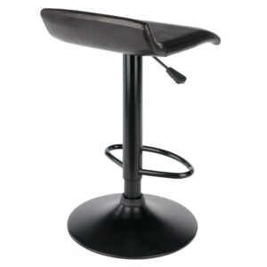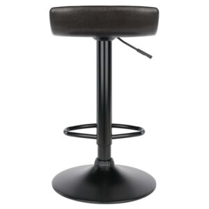 Adjust your seat with these Winsome Wood Paris Adjustable Swivel Stools, a modern style that will blend well with contemporary settings. Featuring a sleek faux leather espresso seat and black metal base stools. The stylish shape and sophisticated look will make an excellent addition to any area of your house. They have a backless design which make these convenient for storing away under the breakfast or wet bar when adjusted to a lower position. Your guests can have their seat at their preferred height, raised up to 31.05″ or easily lowered to 23.35″ by just lifting the leveler on the side, making these suitable for all guest. So, whether in your kitchen or the bar these versatile bar stools swivel up to 360 degrees for extra utility and a have a foot bar providing that additional comfort. The 15″ base also helps provide durability and sturdiness for long-lasting wear. This set of 2 is shipped in 1 box for your convenience. Some assembly is required. Replacement parts can be requested directly to the manufacturer within 60 days from date of purchase.