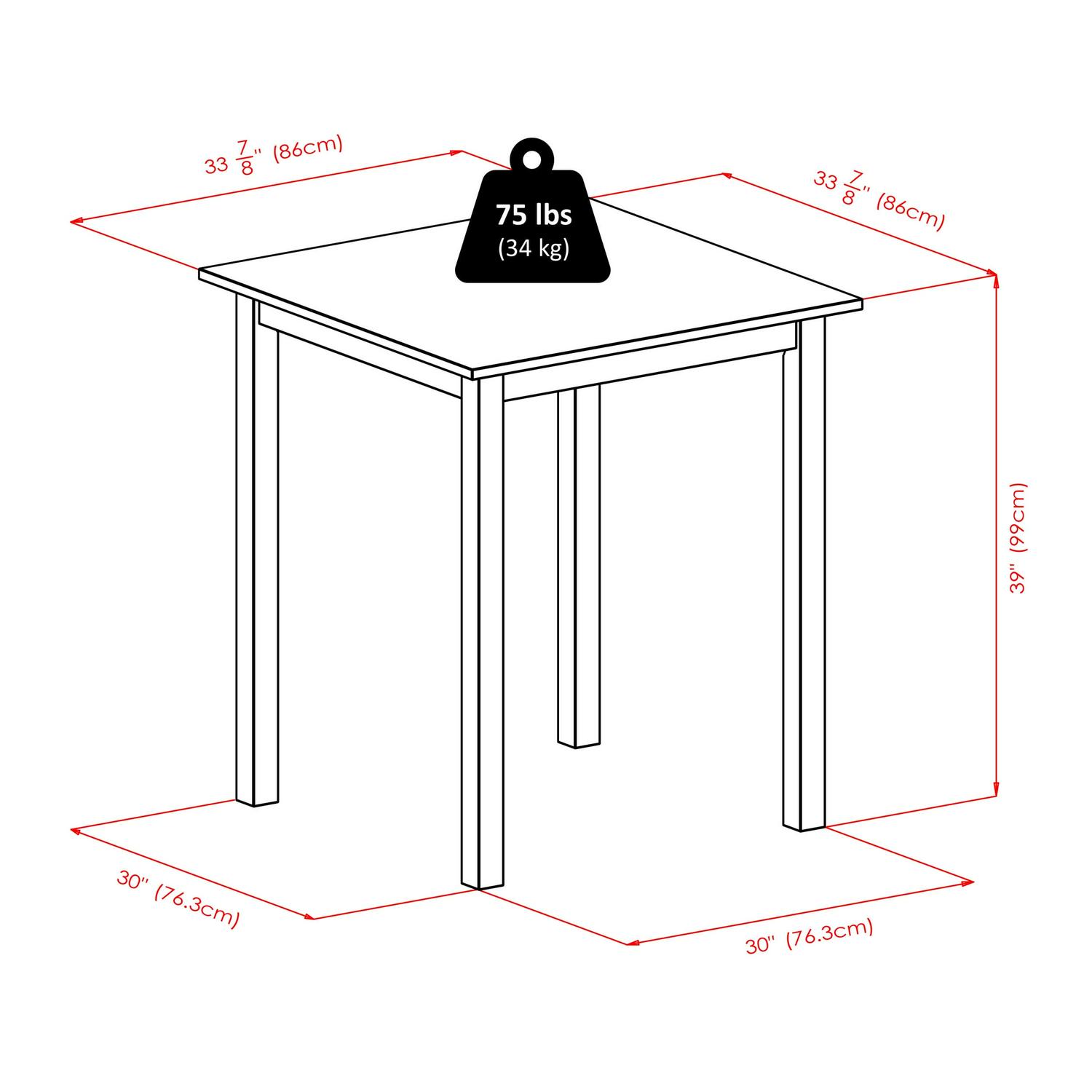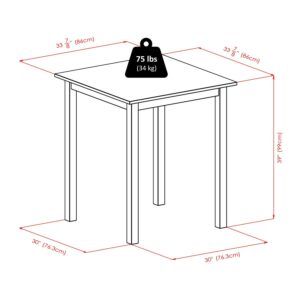 The Winsome Parkland 3 Piece High Table with 29 in. Ladder Back Stools, is a great basic set. All wood with clean straight lines. Square table top measures: 34L x 34W x 39H inches. Ladderback wood stools match perfectly. Solid wood construction with antique walnut finish. A rich and classy look. Stool measure: 18.5W x 16.5D x 42H inches, seat height 29 inches.