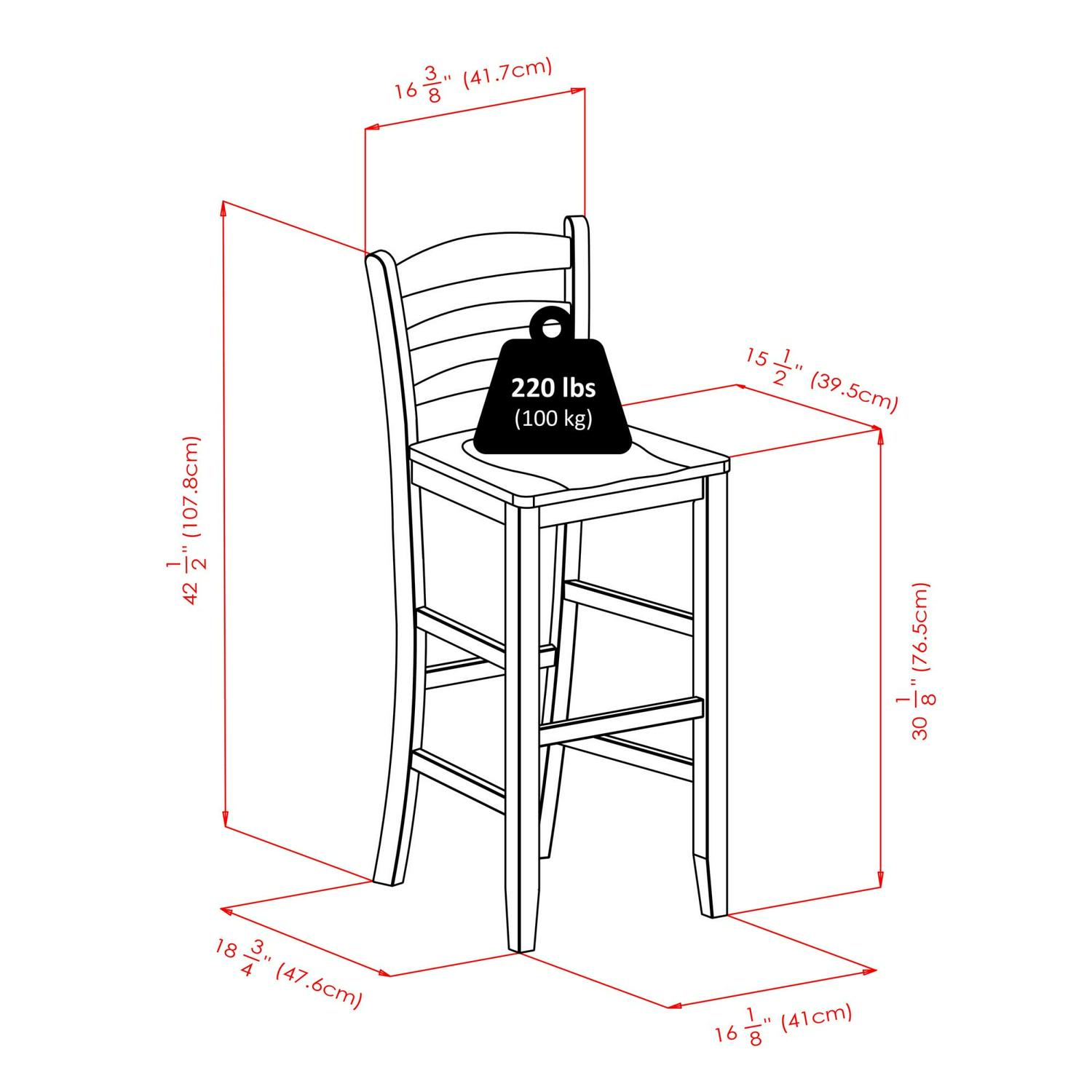 – Includes 4 Ladder Bar Stool 16.58″W x 19.35″D x 42.46″H; Seat Dim 16.34″ x 15.55″.